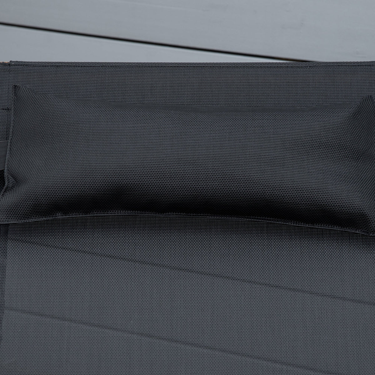 Outdoor lounging just got a lot better. Pair your days outside with this Outsunny lounger for complete relaxation. Using solid wood to form the frame, it is able to handle up to 120Â kg effortlessly, with a three-level adjustable back for in-control supports crafted into a smooth curved shape that better adapts to your body shape. It's fitted with a breathable mesh fabric seat that holds your body in place, with a removable pillow for extra comfort and support to the head and neck.