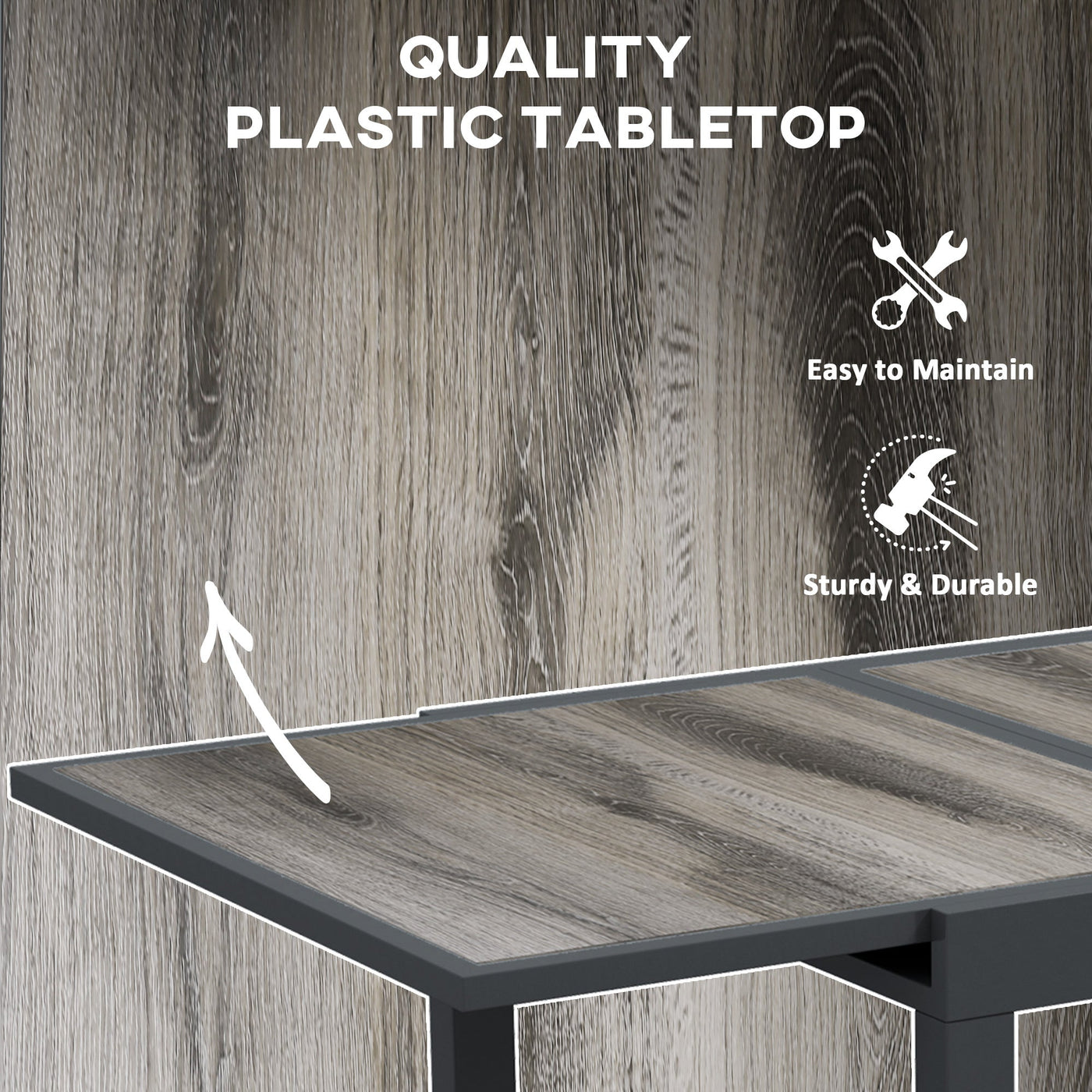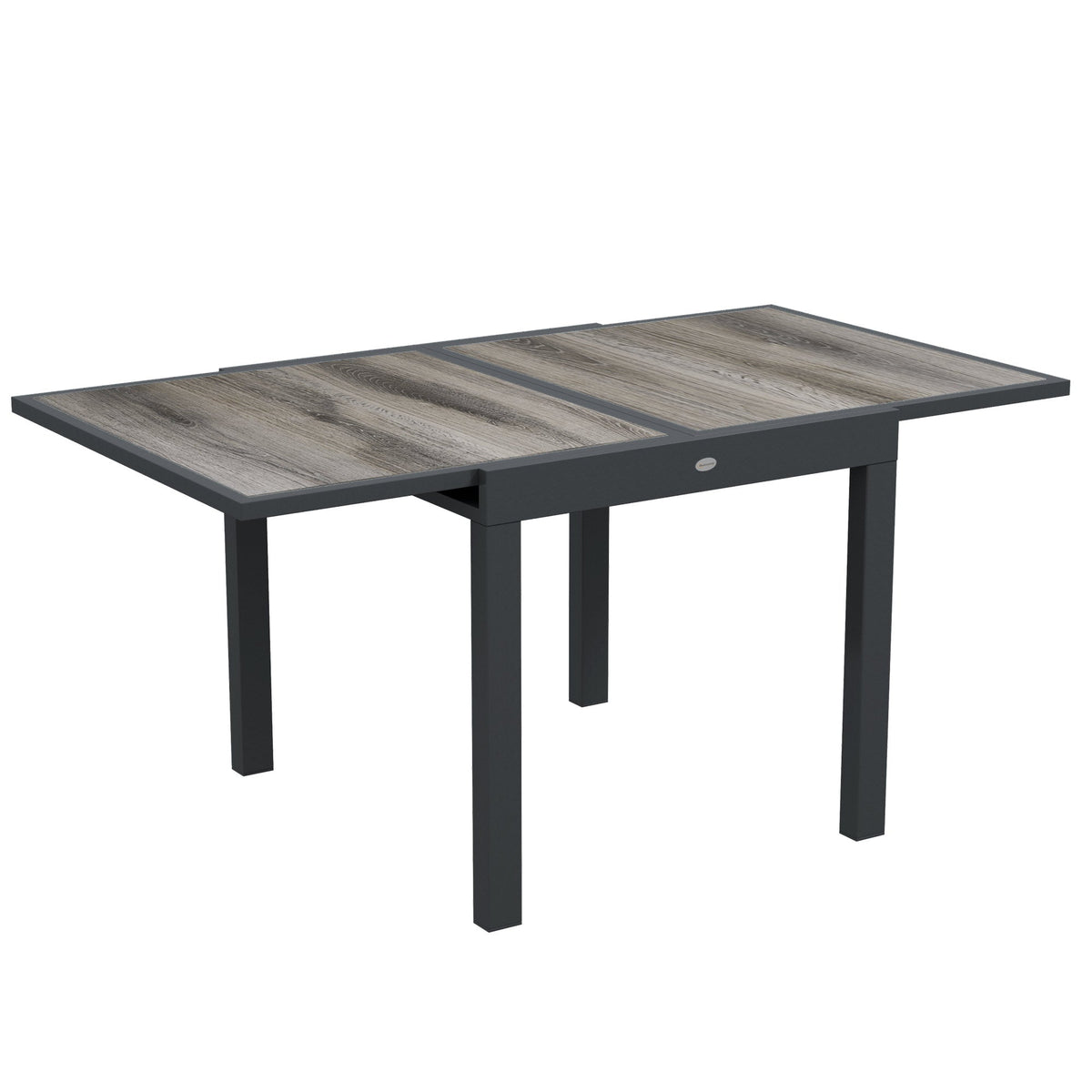 Outsunny Extending Garden Table, Outdoor Dining Table for 6, Aluminium Frame Rectangular Patio Table with Plastic Board Tabletop,80/160L x 80W x 75H cm, Grey - Grey