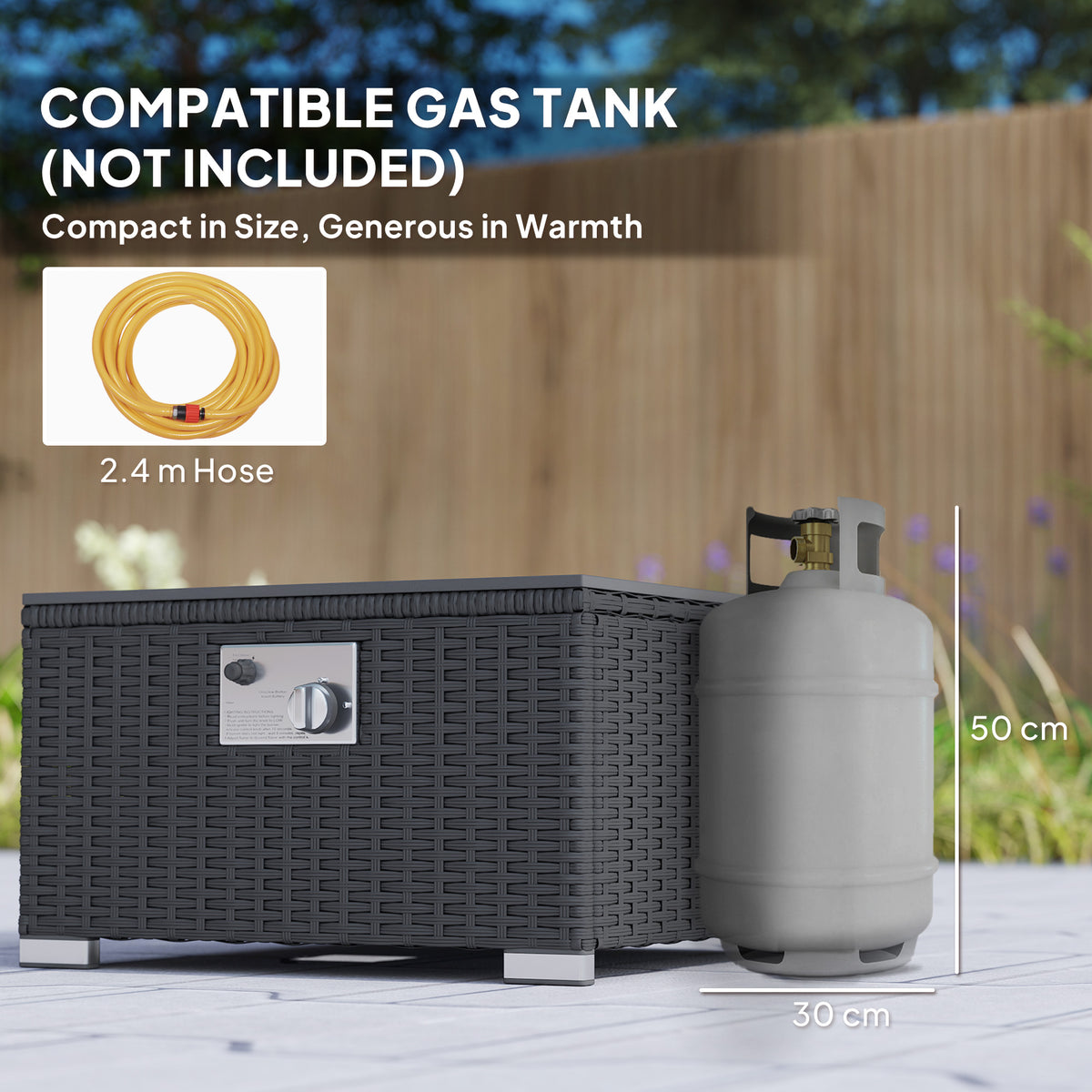 Outsunny Five Piece Rattan Garden Furniture Set with Gas Fire Pit Table and Footstool - Black and Cream White - Black, Cream White
