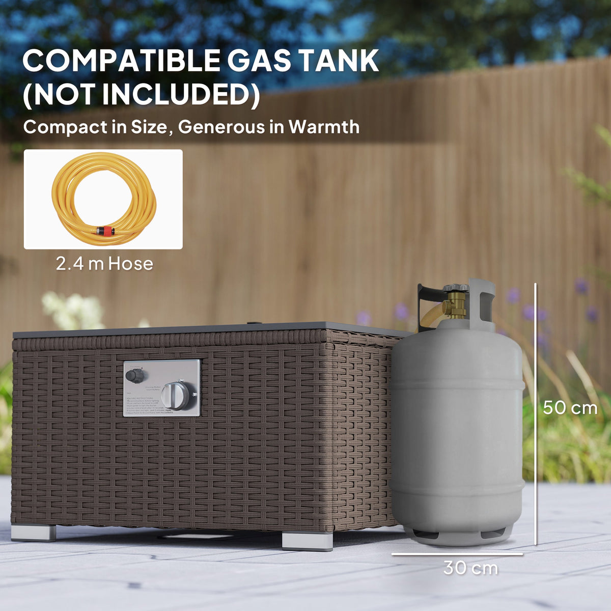 Outsunny Five Piece Rattan Garden Furniture Set with Gas Fire Pit Table and Footstool - Brown and Cream White - Brown, Cream White