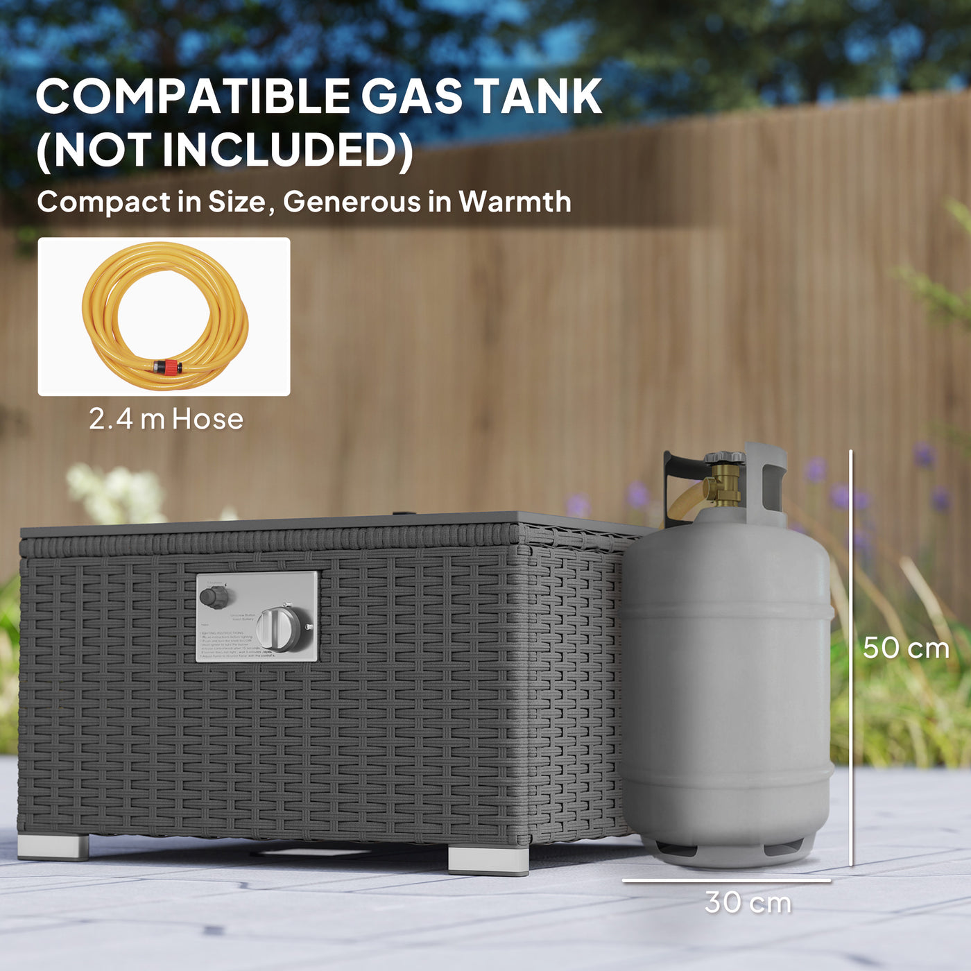 Outsunny Five Piece Rattan Garden Furniture Set with Gas Fire Pit Table and Footstool - Grey - Grey