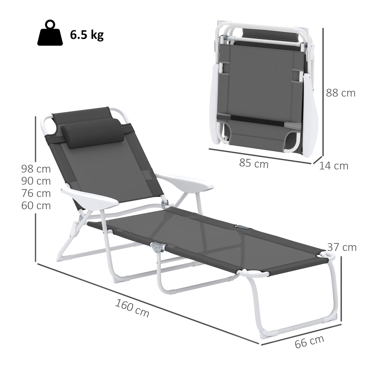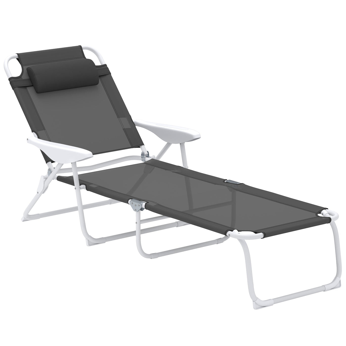 Outsunny Foldable Lounge Chair with 4-Level Adjustable Backrest & Headrest - Charcoal Grey - Charcoal grey