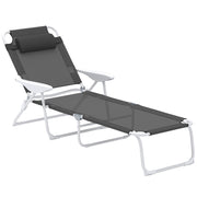 Outsunny Foldable Lounge Chair with 4-Level Adjustable Backrest & Headrest - Charcoal Grey