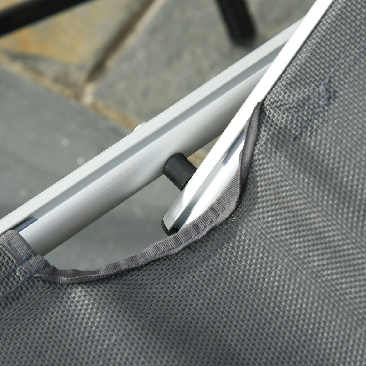 Outsunny Foldable Outdoor Sun Loungers Set of 2, Reclining Lounge Chair Camping Bed Cot with Pillow 4-Level Adjustable Back Aluminium Frame, Grey - Dark Grey