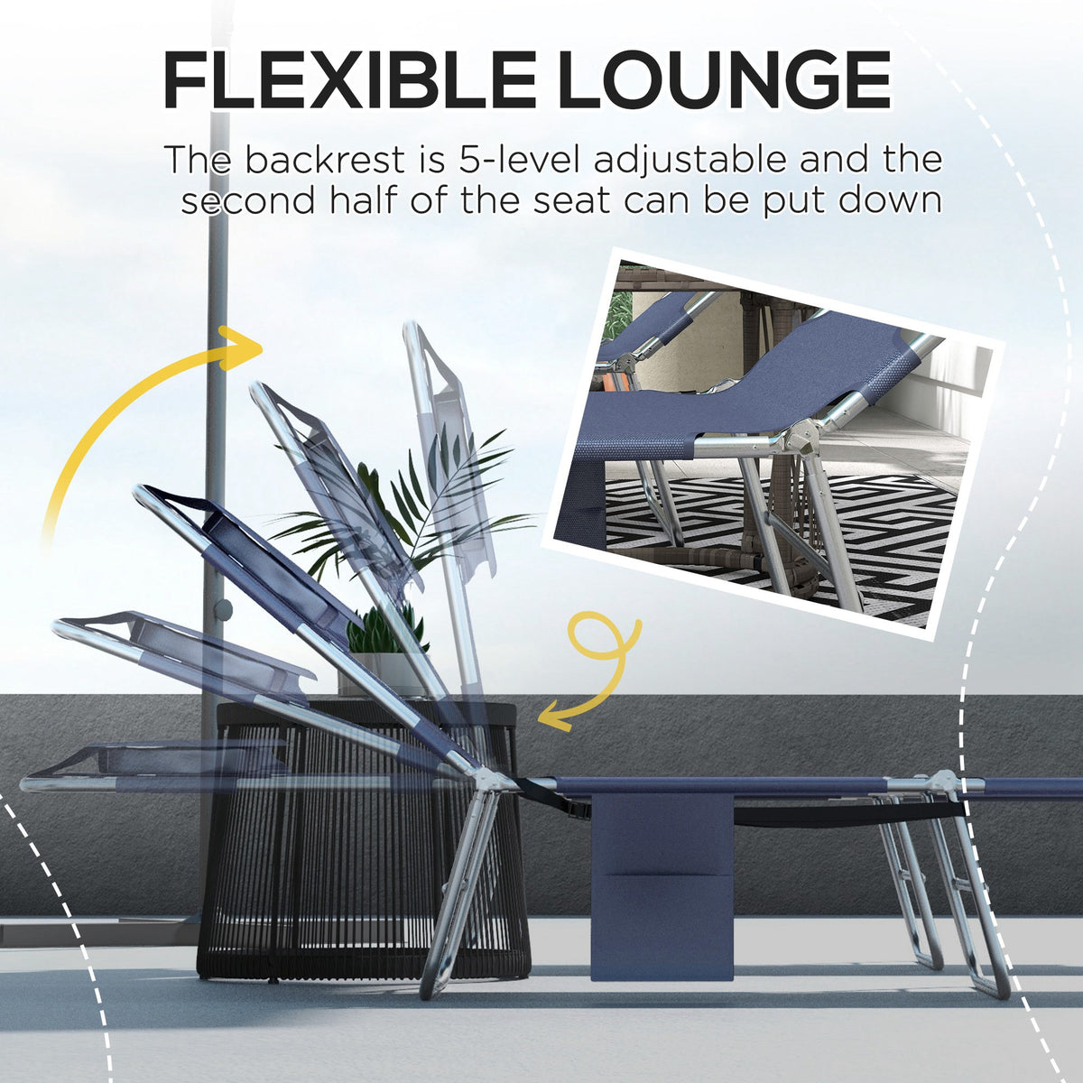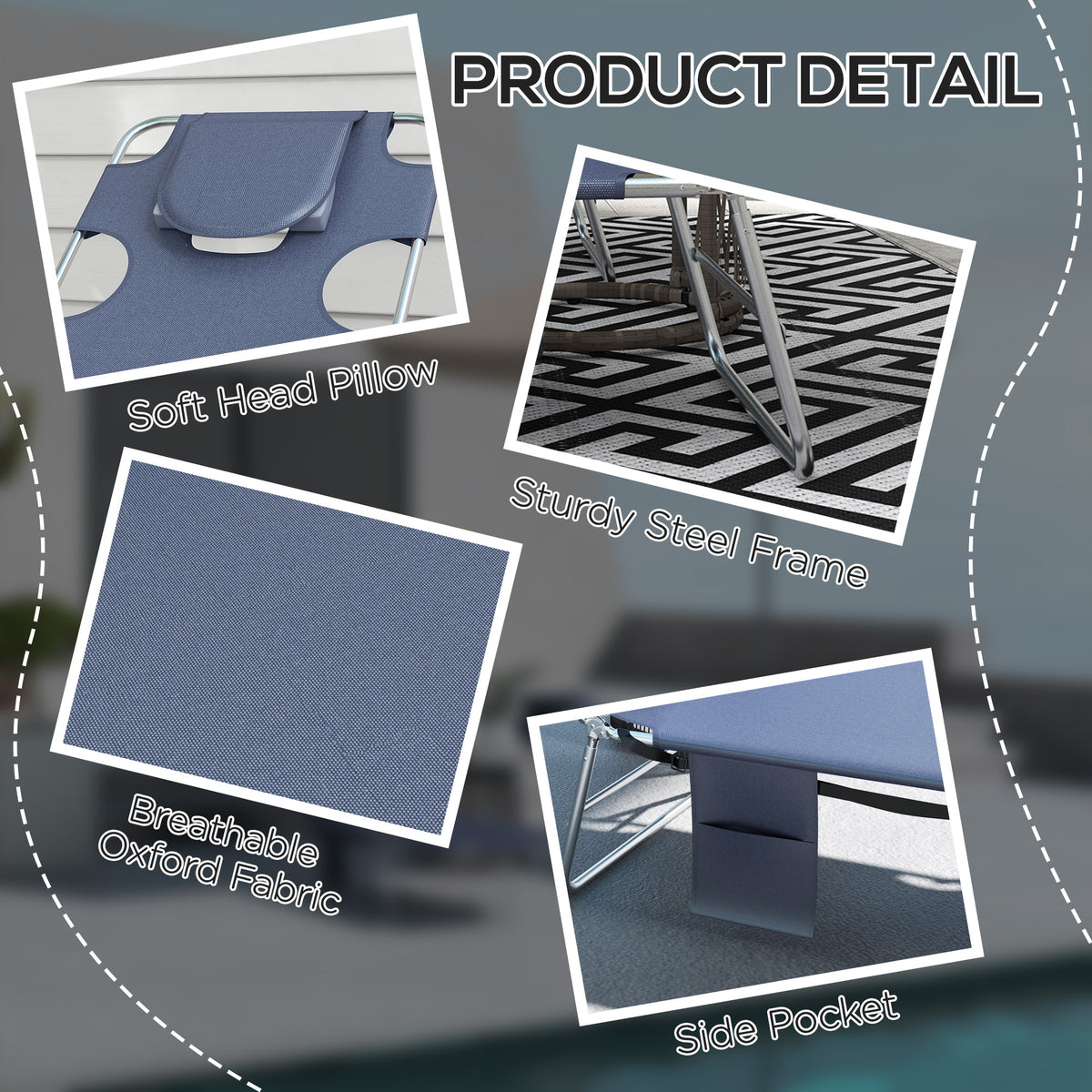 Outsunny Foldable Sun Lounger Set of 2 with Reading Hole, Portable Sun Lounger with 5 Level Adjustable Backrest, Reclining Lounge Chair with Side Pocket, Headrest Pillow, Grey - Grey
