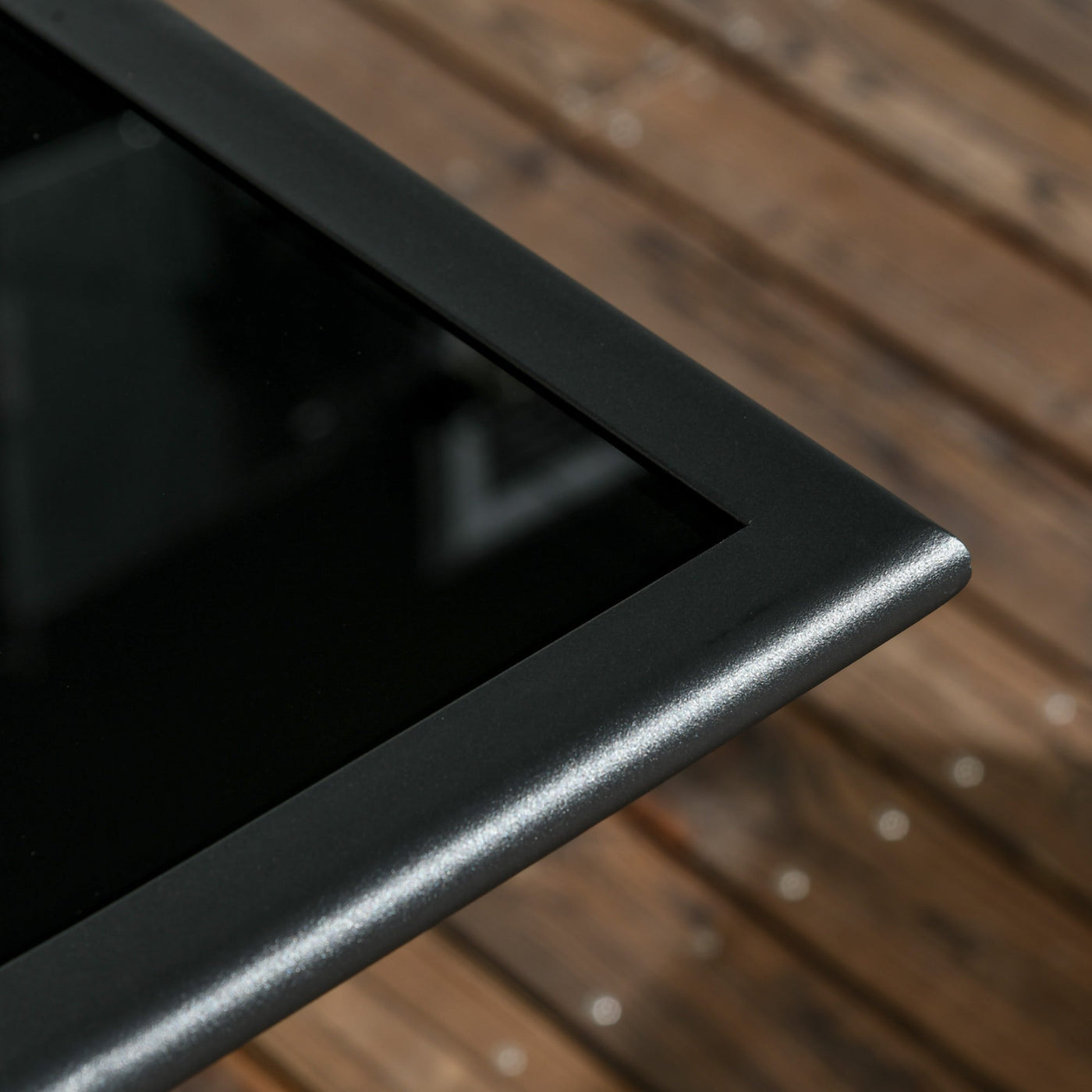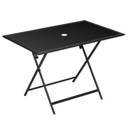 Outsunny Folding Outdoor Dining Table for 6, Rectangle Garden Table Tempered Glass Top with Parasol Hole Garden Lawn Backyard, 110 x 70 x 70 cm - Black