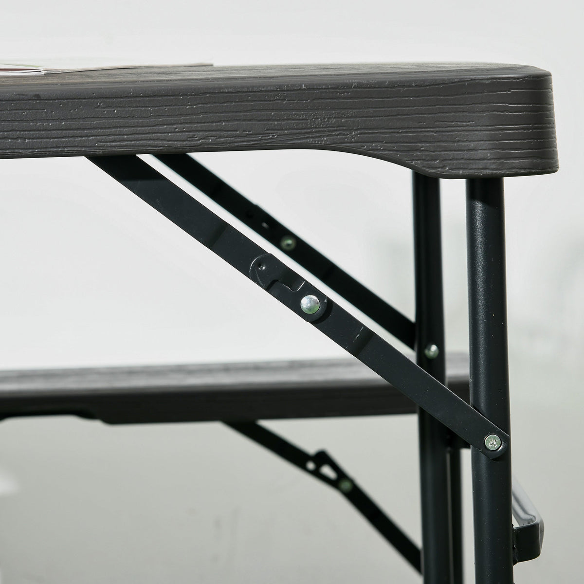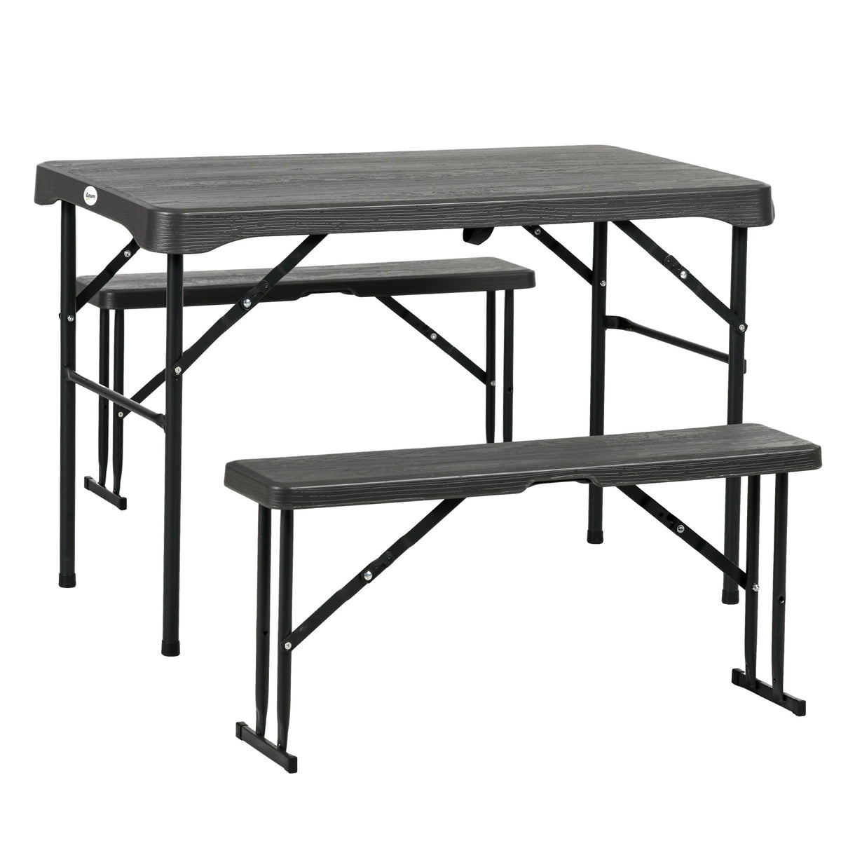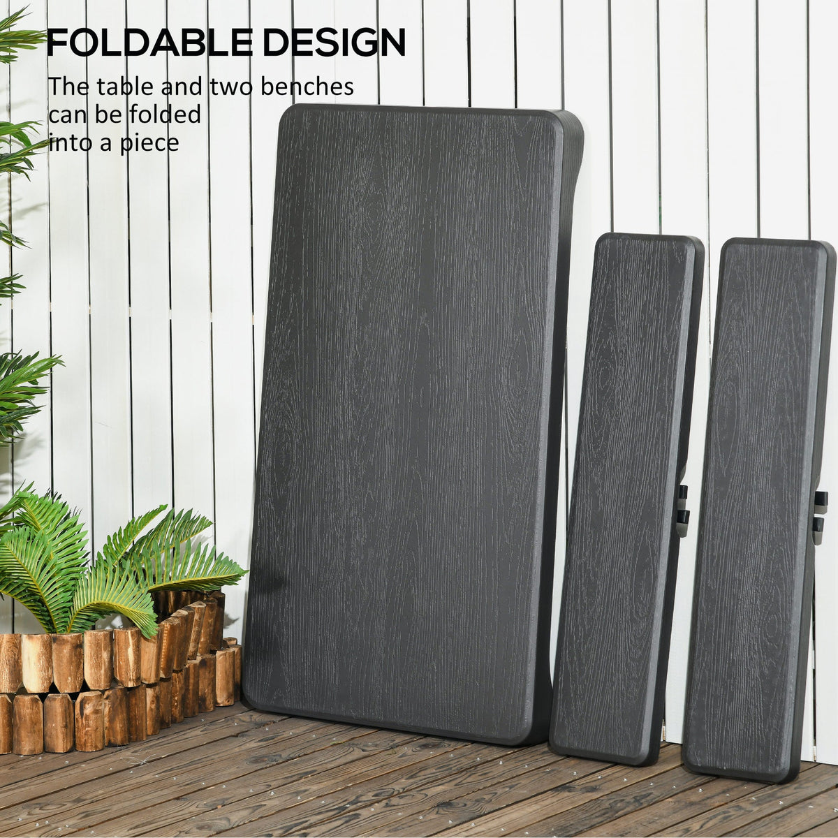 Outsunny Folding Picnic Table with 2 Benches, 3-Piece Portable Garden Furniture Set for 4, Dining Table Set with Plastic Top, Steel Frame, Dark Grey - Dark Grey