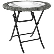 Outsunny Folding Rattan Garden Dining Table, 68 cm Round Rattan Garden Table with Water Ripple Tempered Glass Top, Wicker Edging and Steel Frame for Outdoor, Patio, Grey - Grey