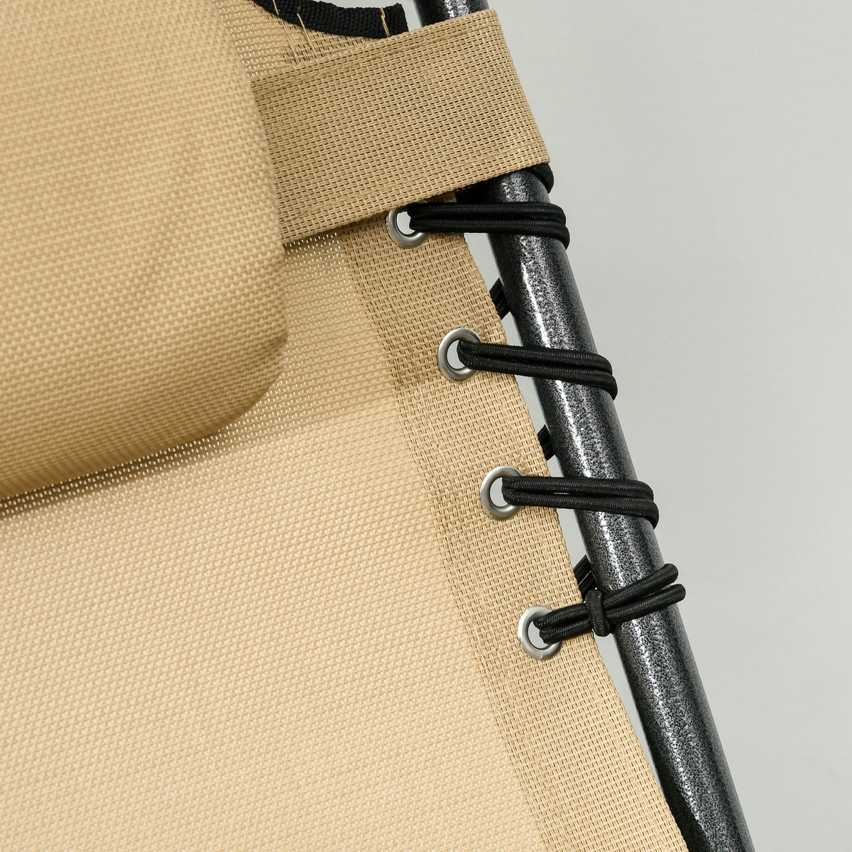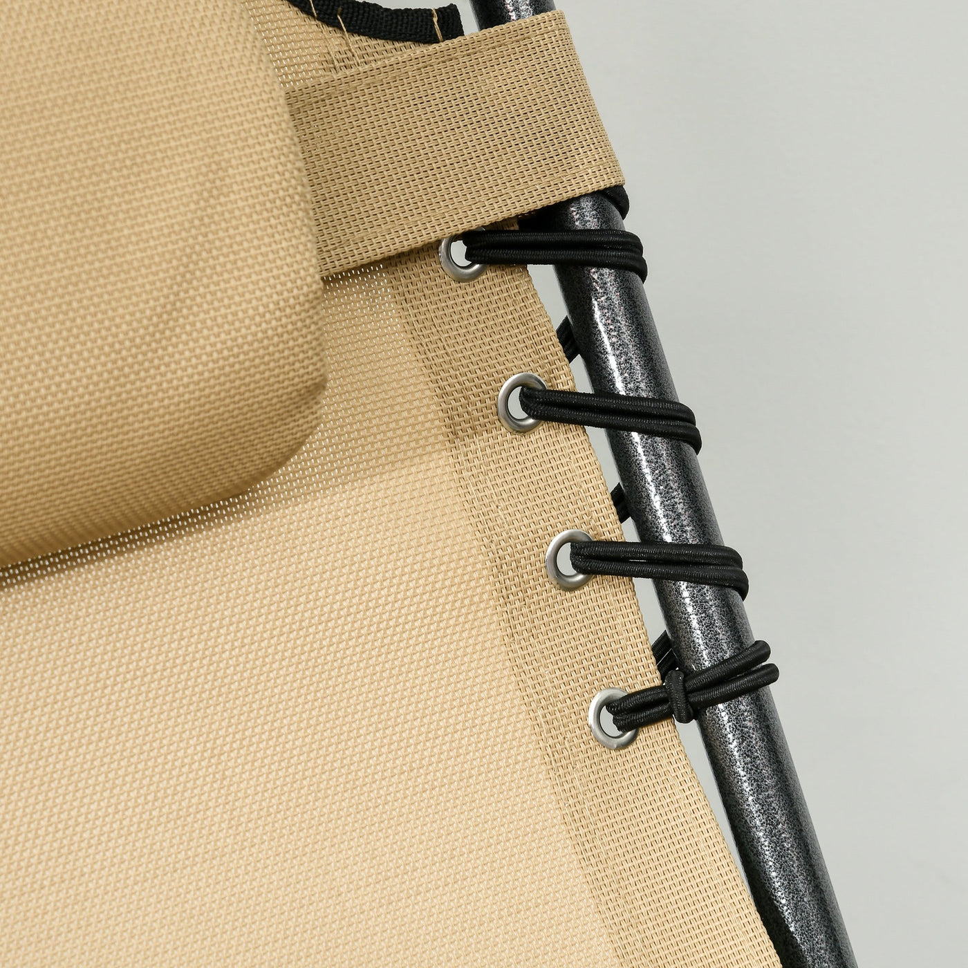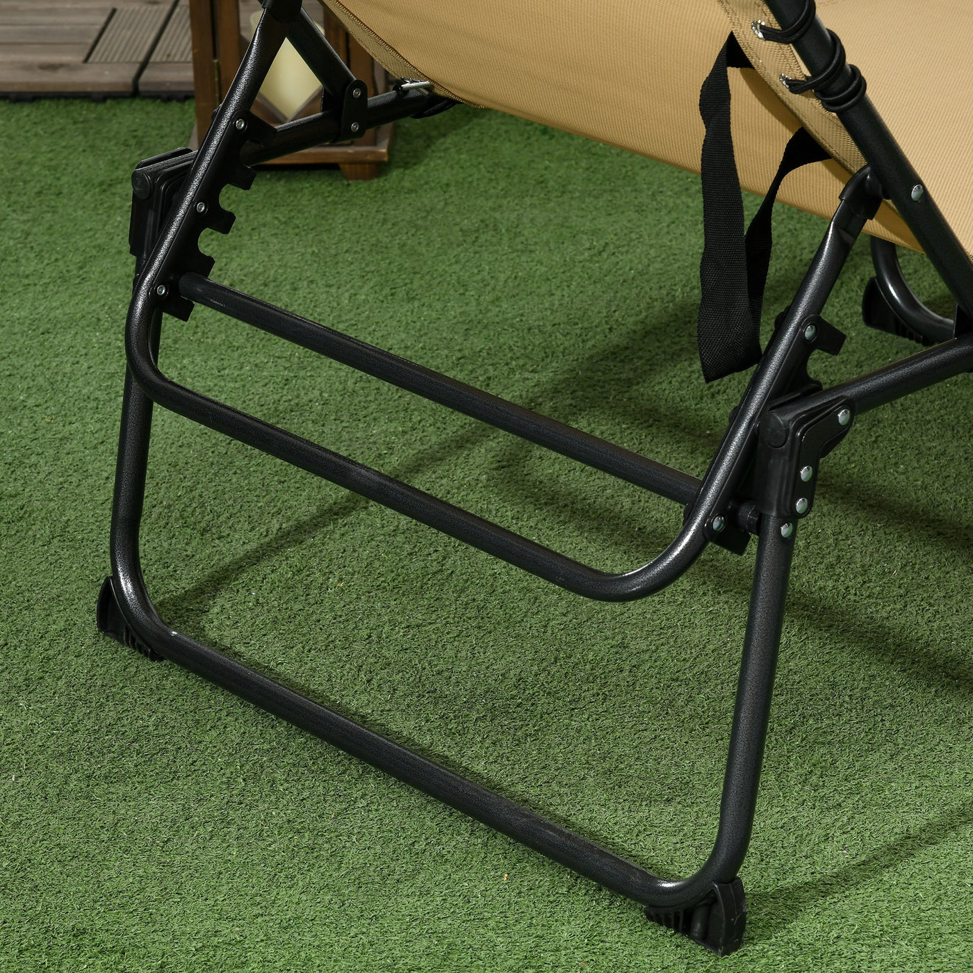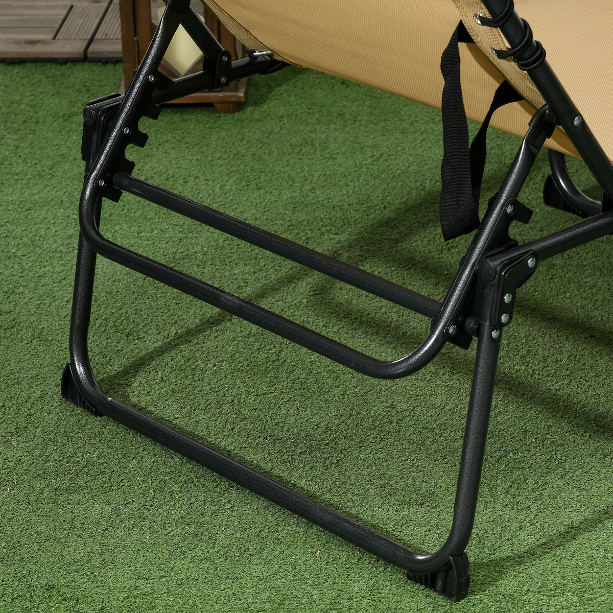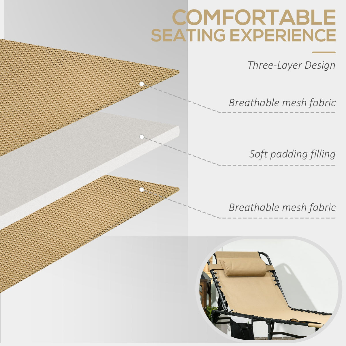 Outsunny Folding Sun Lounge with 5-level Reclining Back, Outdoor Tanning Chair with Reading Hole, Outdoor Sun Lounge with Side Pocket, Headrest, for Beach, Yard, Patio, Beige - Beige