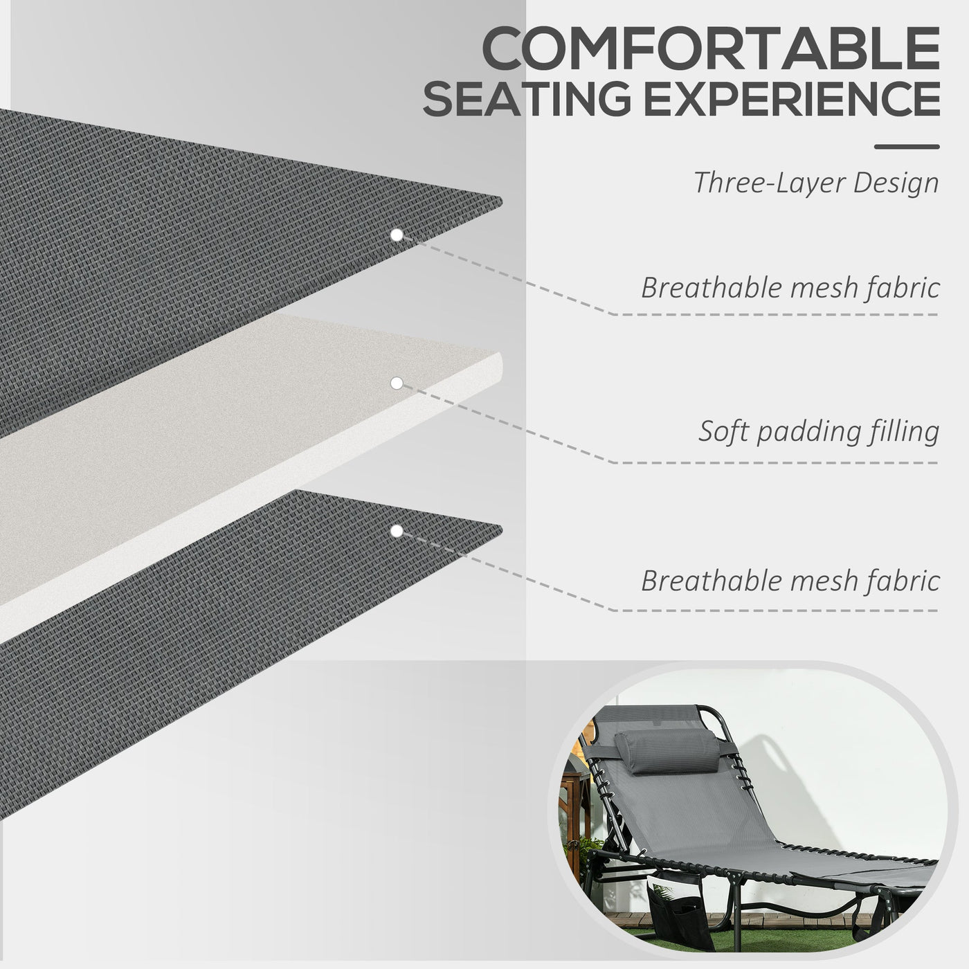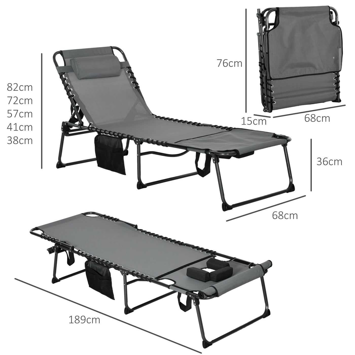 Outsunny Folding Sun Lounge with 5-level Reclining Back, Outdoor Tanning Chair with Reading Hole, Outdoor Sun Lounge with Side Pocket, Headrest, for Beach, Yard, Patio, Grey - Grey