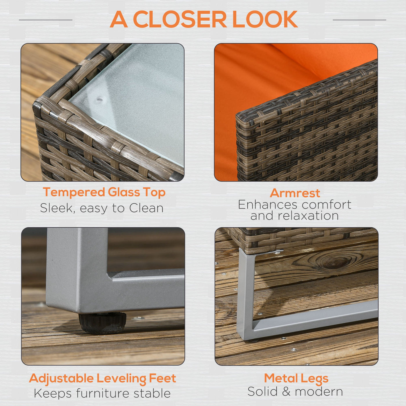 Outsunny Four-Piece Rattan Sofa Set, with Storage Table - Orange/Brown