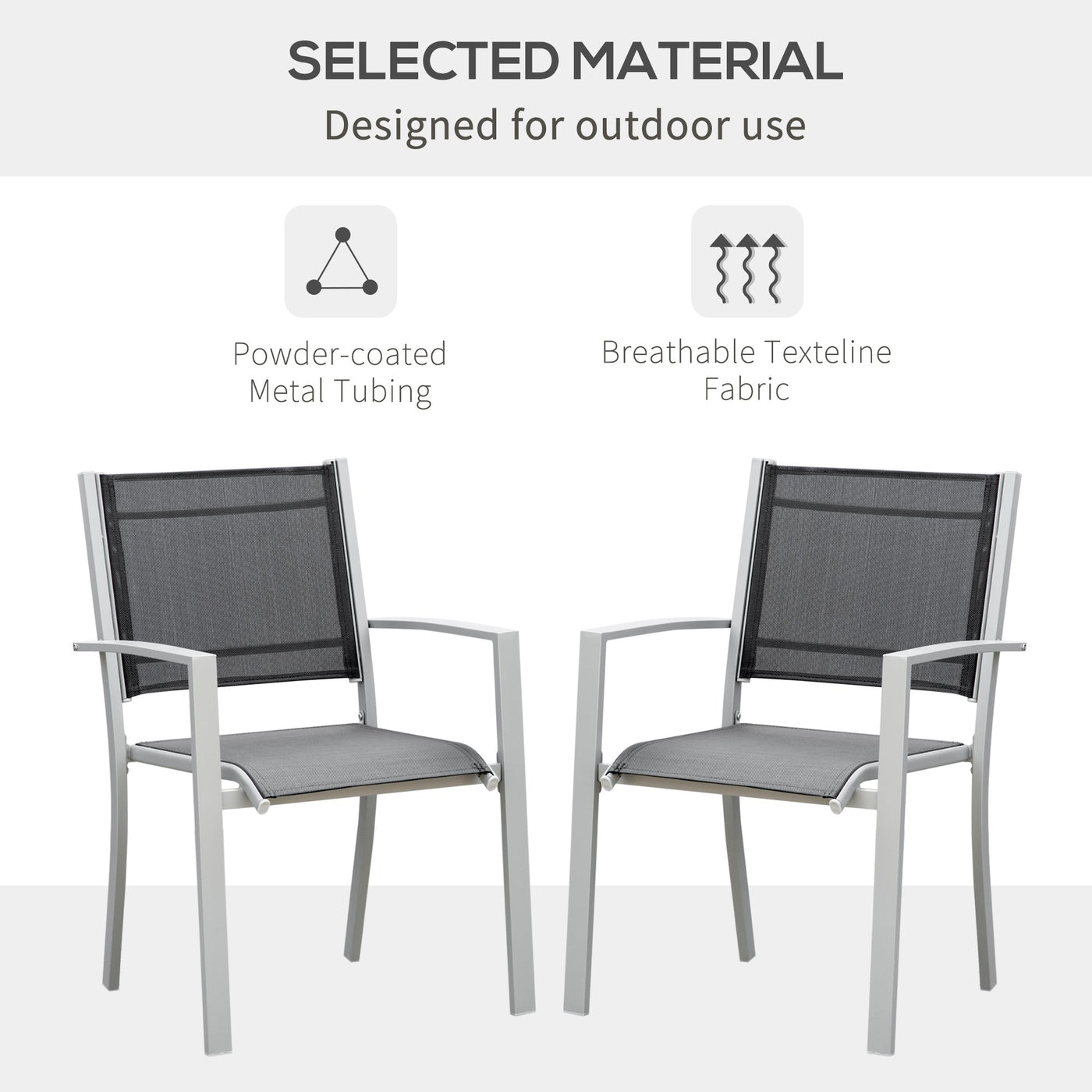 Outsunny Garden Chairs Set Of 2 Outdoor Chairs with Steel Frame Texteline Seats for Dining Patio Balcony Grey and Black - Grey