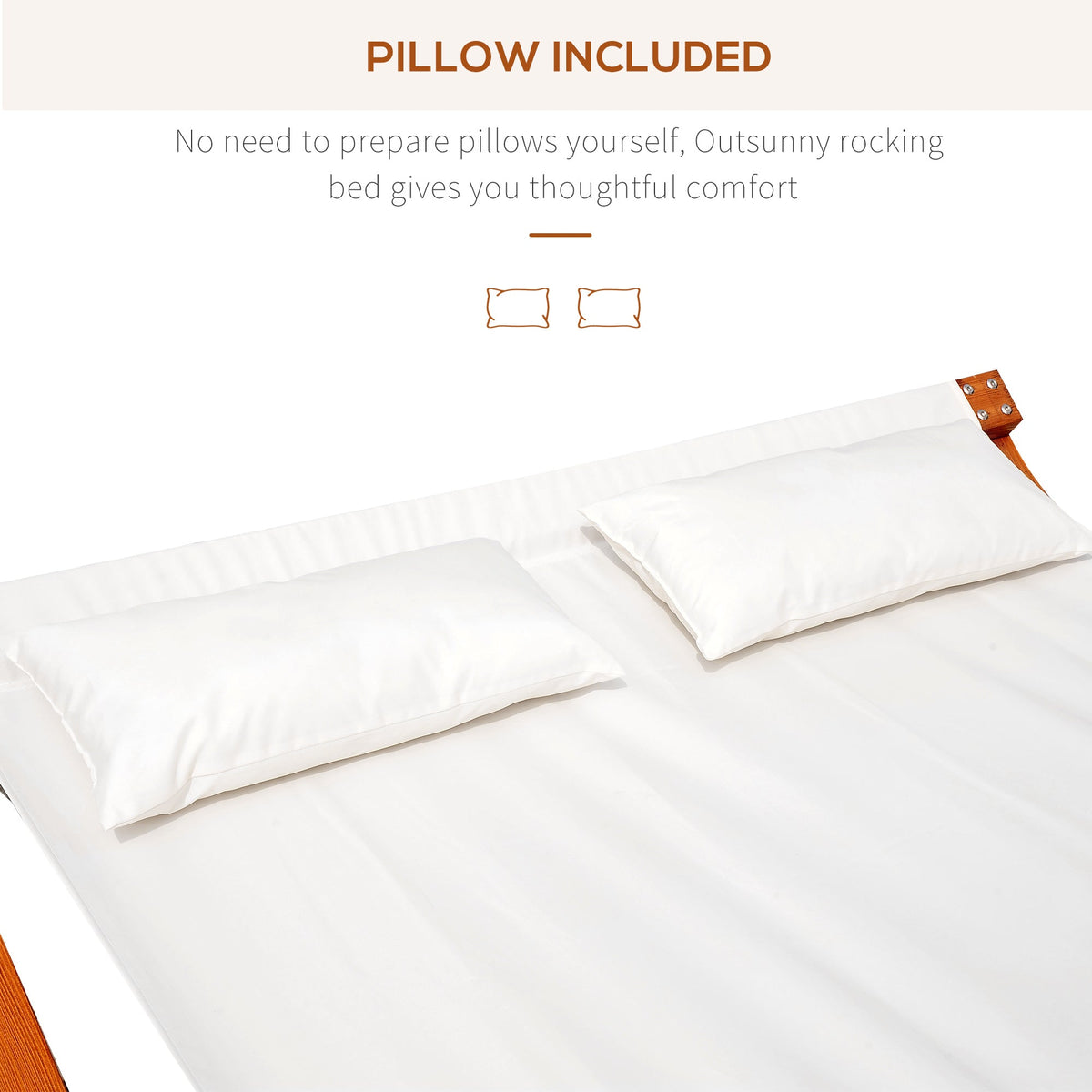 Outsunny Garden Day Rocking Bed Sun Lounger Patio Furniture Hammock With Pillows Wood
