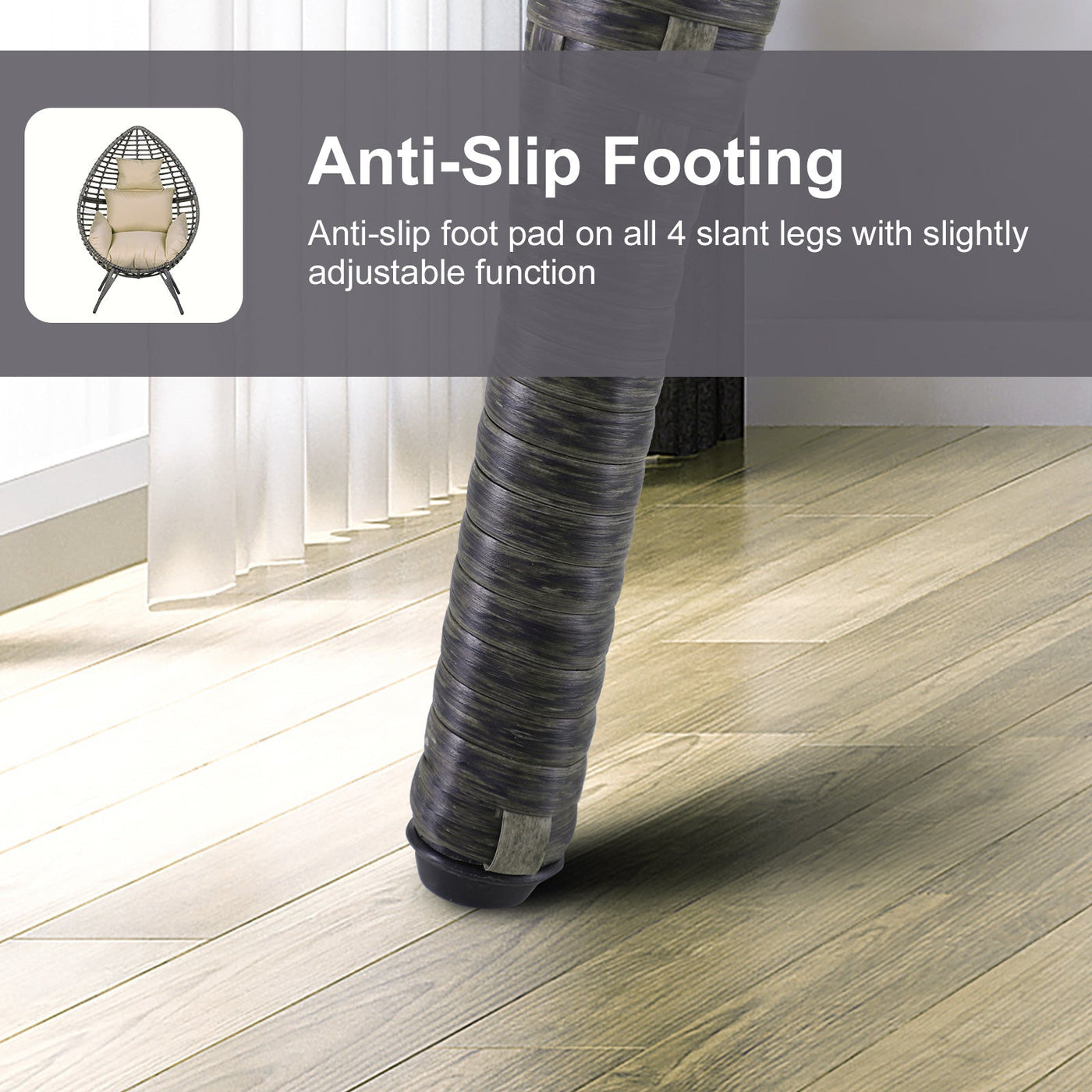 Outsunny Garden Egg Chair, Teardrop Outdoor PE Rattan Chair with Full-body Soft Padded Cushion, Grey - Beige