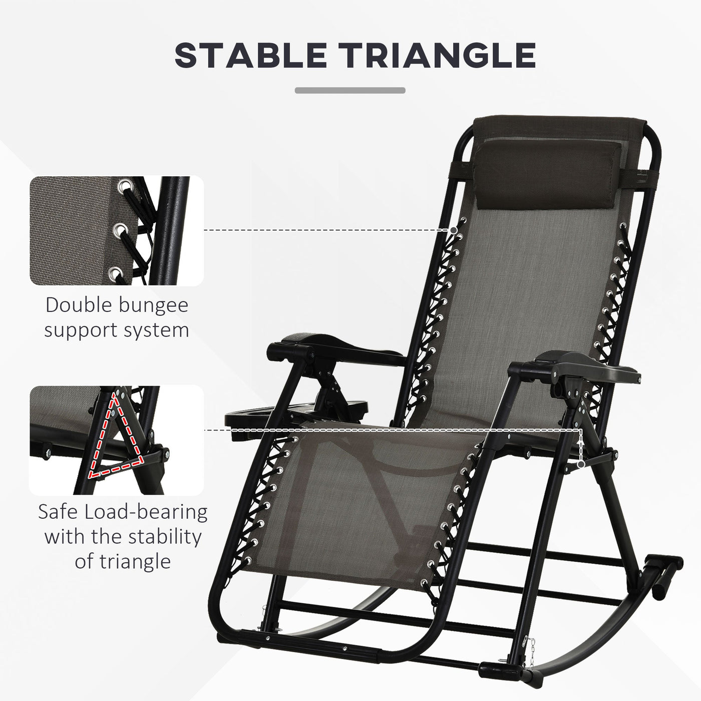 Outsunny Garden Rocking Chair Folding Recliner Outdoor Adjustable Sun Lounger Rocker Zero-Gravity Seat with Headrest Side Holder Patio Deck - Grey - Grey