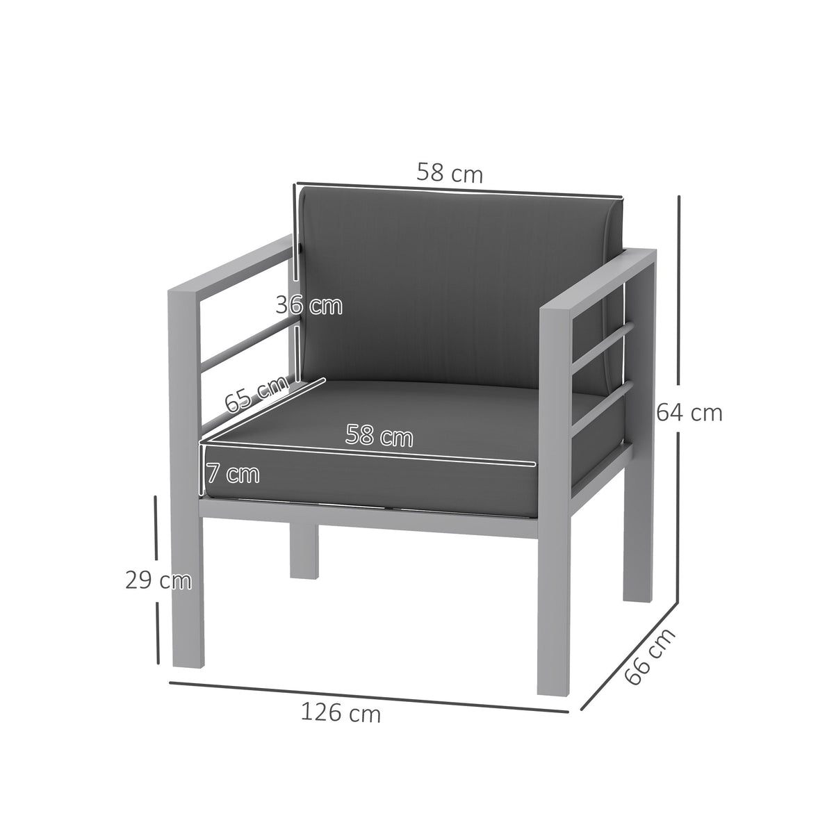 Outsunny Garden Sofa, All-Weather Garden Single Sofa with Removable Cushions, Metal Frame Outdoor Furniture for Balcony, Charcoal Grey - Charcoal grey