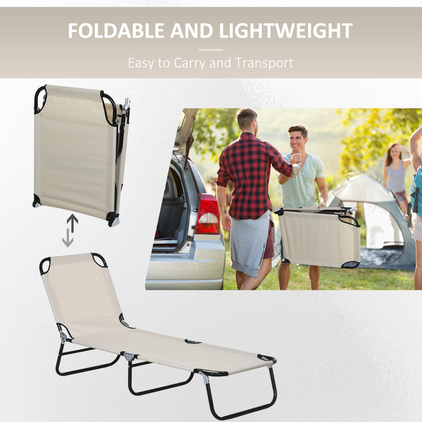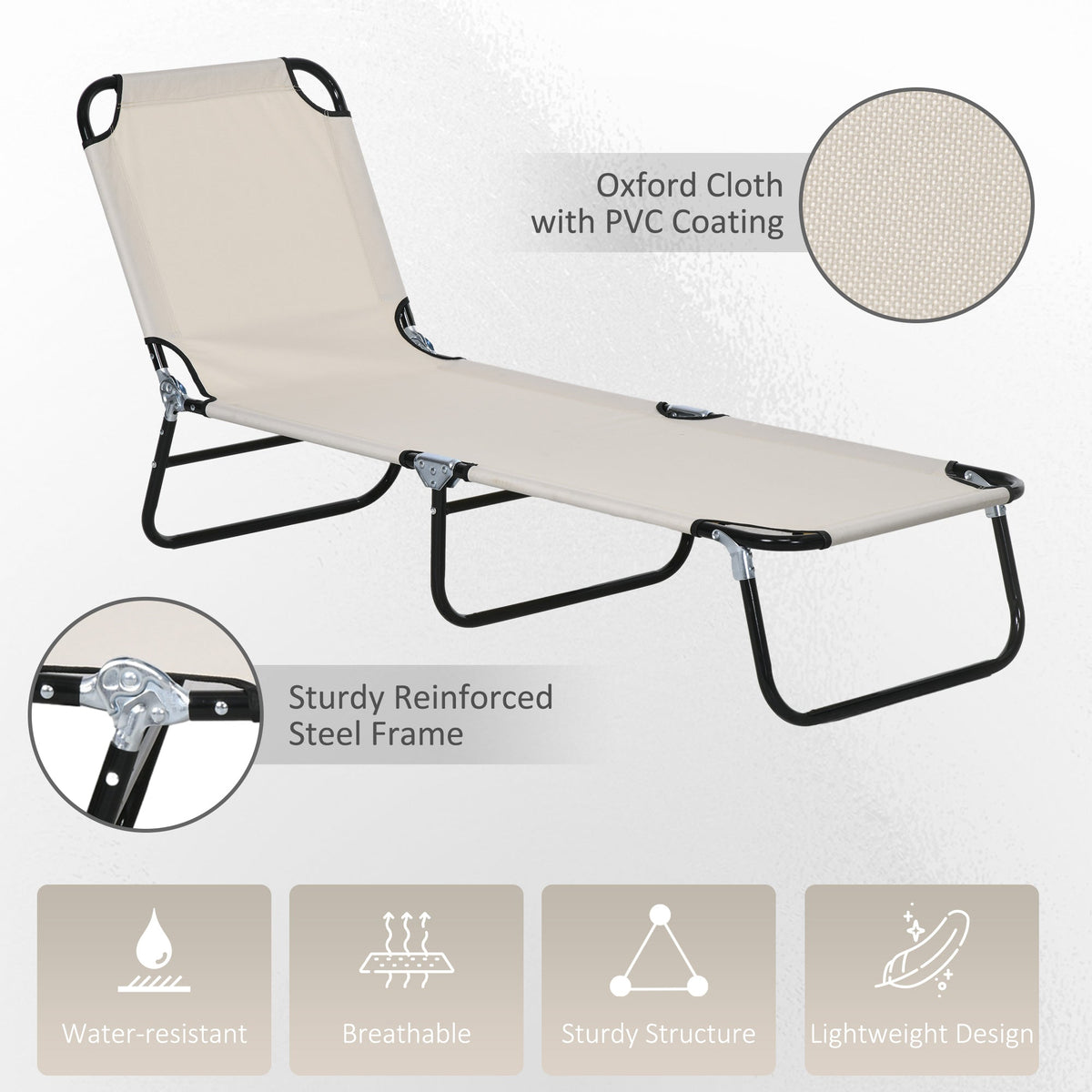 Outsunny Garden Sun Lounger, with Five-Position Back - Cream White - Cream