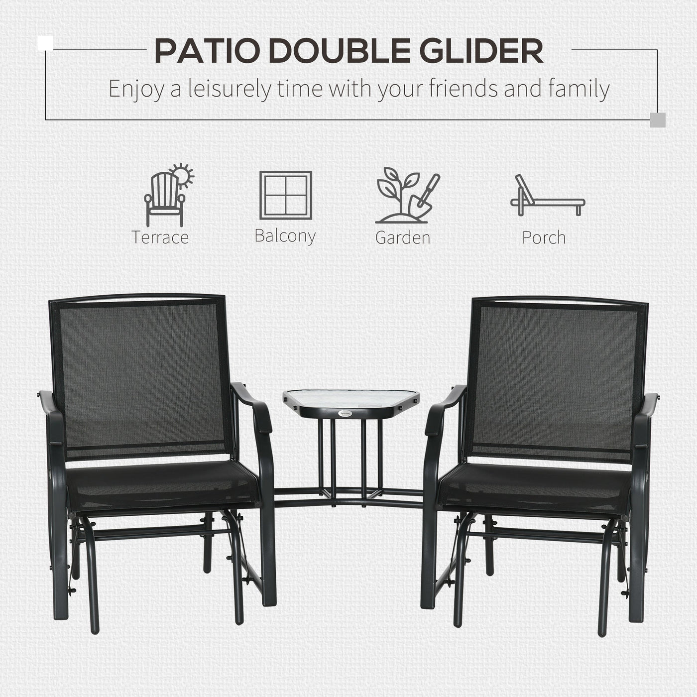 Outsunny Gliding Jack and Jill Seat, with Glass-Top Table - Black - Black