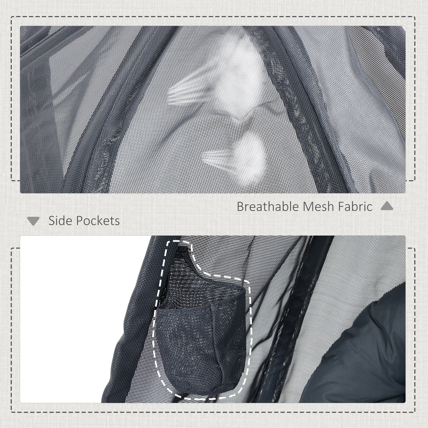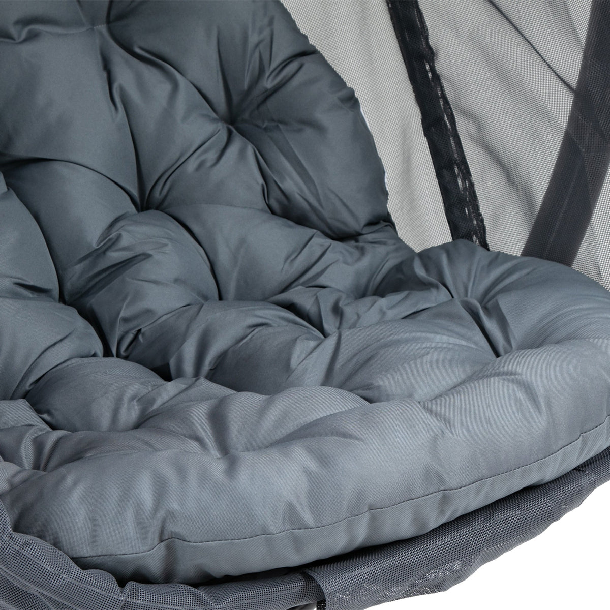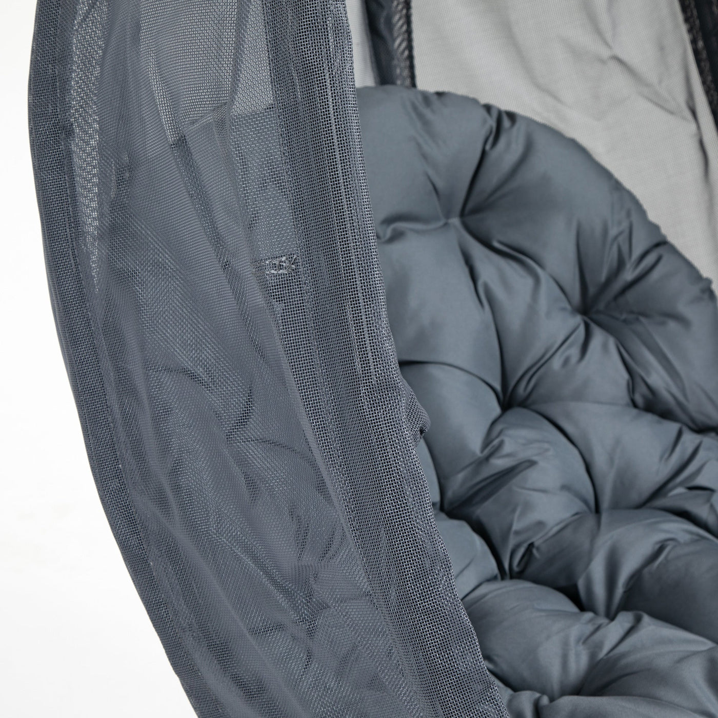 Outsunny Hanging Egg Chair, Folding Texteline Swing Hammock with Side Pocket, Cushion and Stand for Indoor Outdoor, Patio Garden Furniture, Grey - Grey