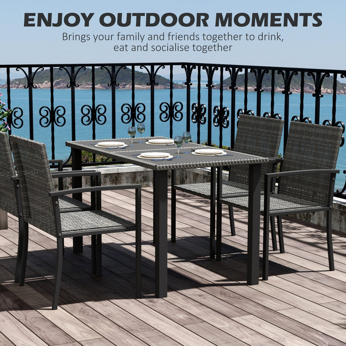 Outsunny Outdoor Dining Set 5 Pieces Patio Conservatory with Tempered Glass Tabletop,4 Dining Chairs - Grey - Grey