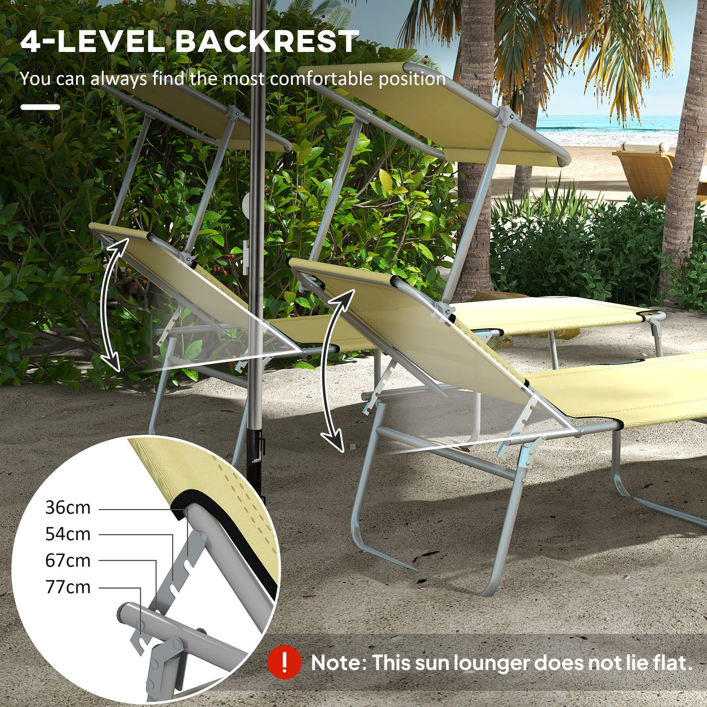 This reclining sun lounger from Outsunny not only keeps you comfortable, but keeps your head safely protected. It's fitted with a moving and removable canopy to shield against the sun and light rain - reducing the risk of heatstroke and getting wet. The back is adjustable to four different levels, to lie back to an angle you like. And when done, simply fold the metal frame and store away.