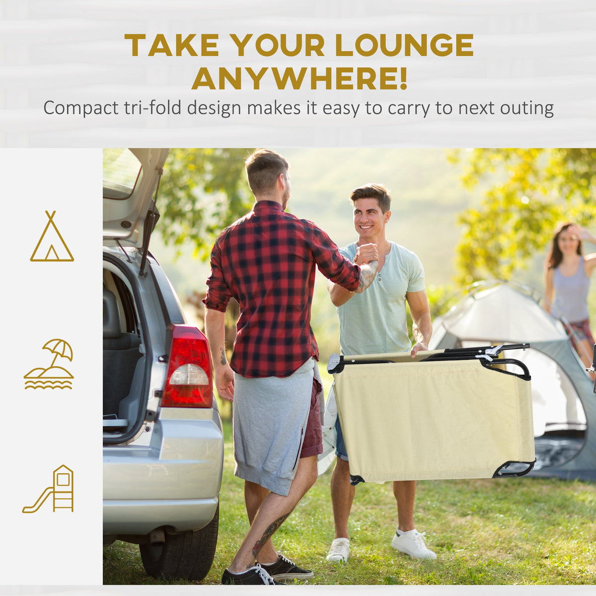 Outsunny Outdoor Folding Sun Lounger Set of 2 with Face Hole, 4 Level Adjustable Backrest Reclining Garden Lounger, Garden Recliner Sunbed with 600 D Oxford Cloth Seat and Pillow for Beach, Beige - Beige