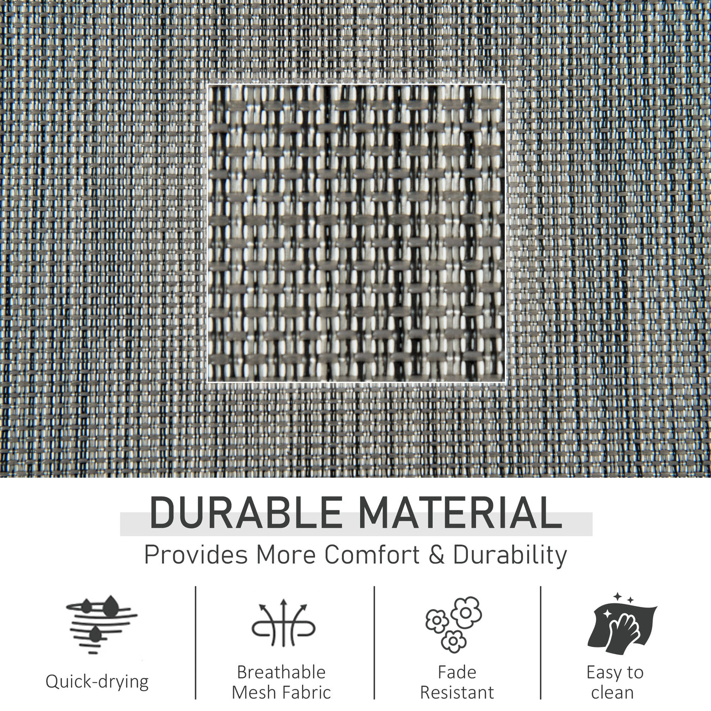 This outdoor rocking chair from Outsunny is a great way to relax outdoors. The curved frame has been made with your body comfort in mind, hugging to the contour of its shape. The seat is wrapped in mesh fabric which holds yours body in place, with a removable top pillow for head and neck comfort. Our patio rocking chair is finished with a removable side pocket, keeping everything you need next to you and rubber pads on the metal frame for protection.