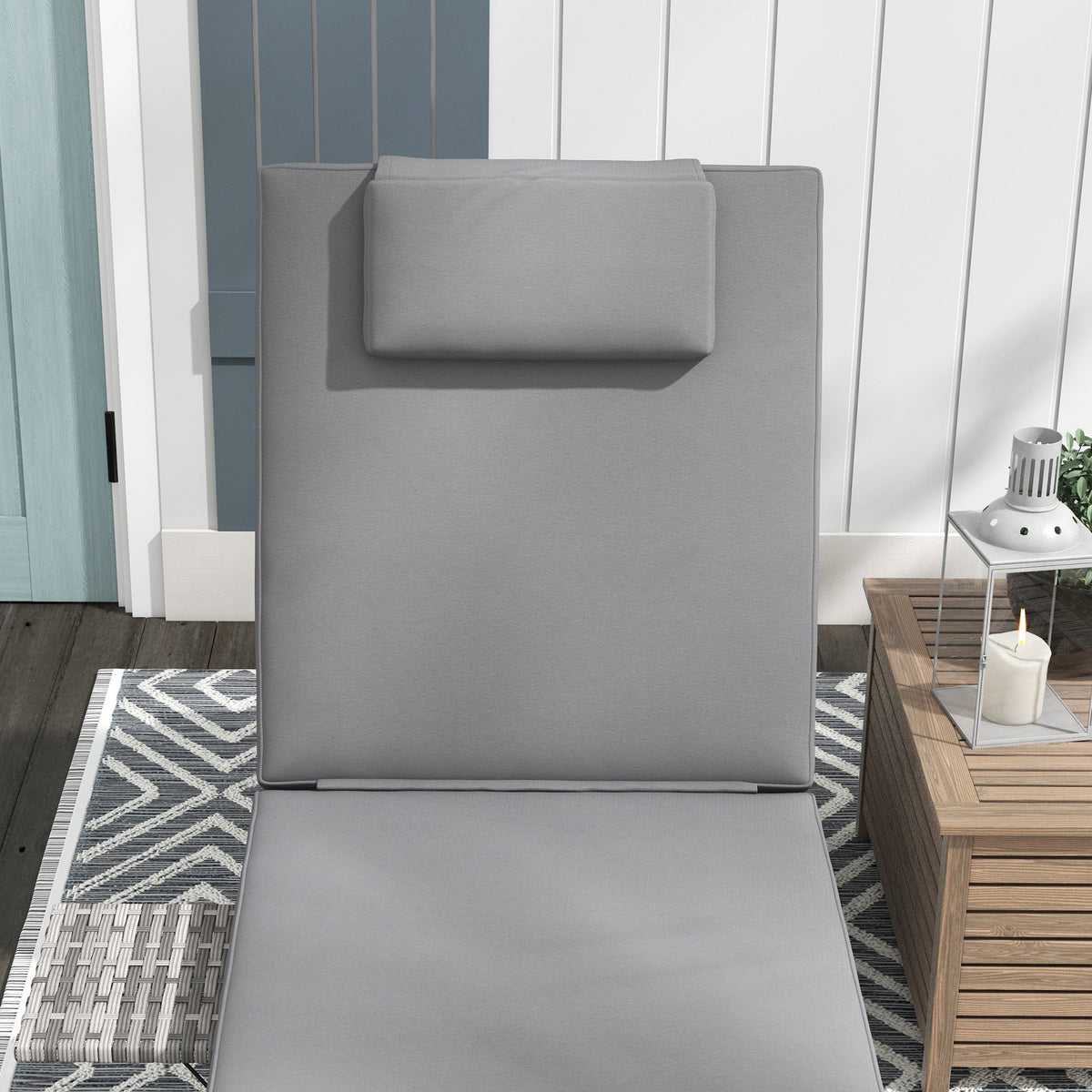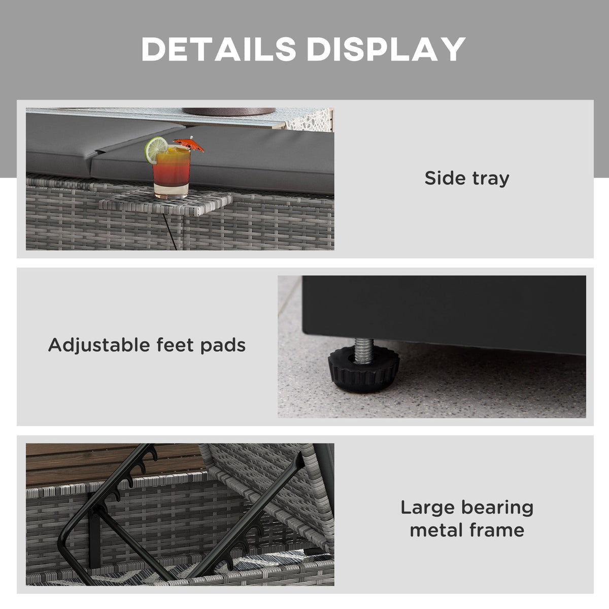 Outsunny Outdoor Patio PE Rattan Lounger with Cushion, 5-Level Reclining Wicker Rattan Sun Lounger with Tea Tray, for Poolside, Patio, Deck, 120kg Weight Capacity, Grey - Grey