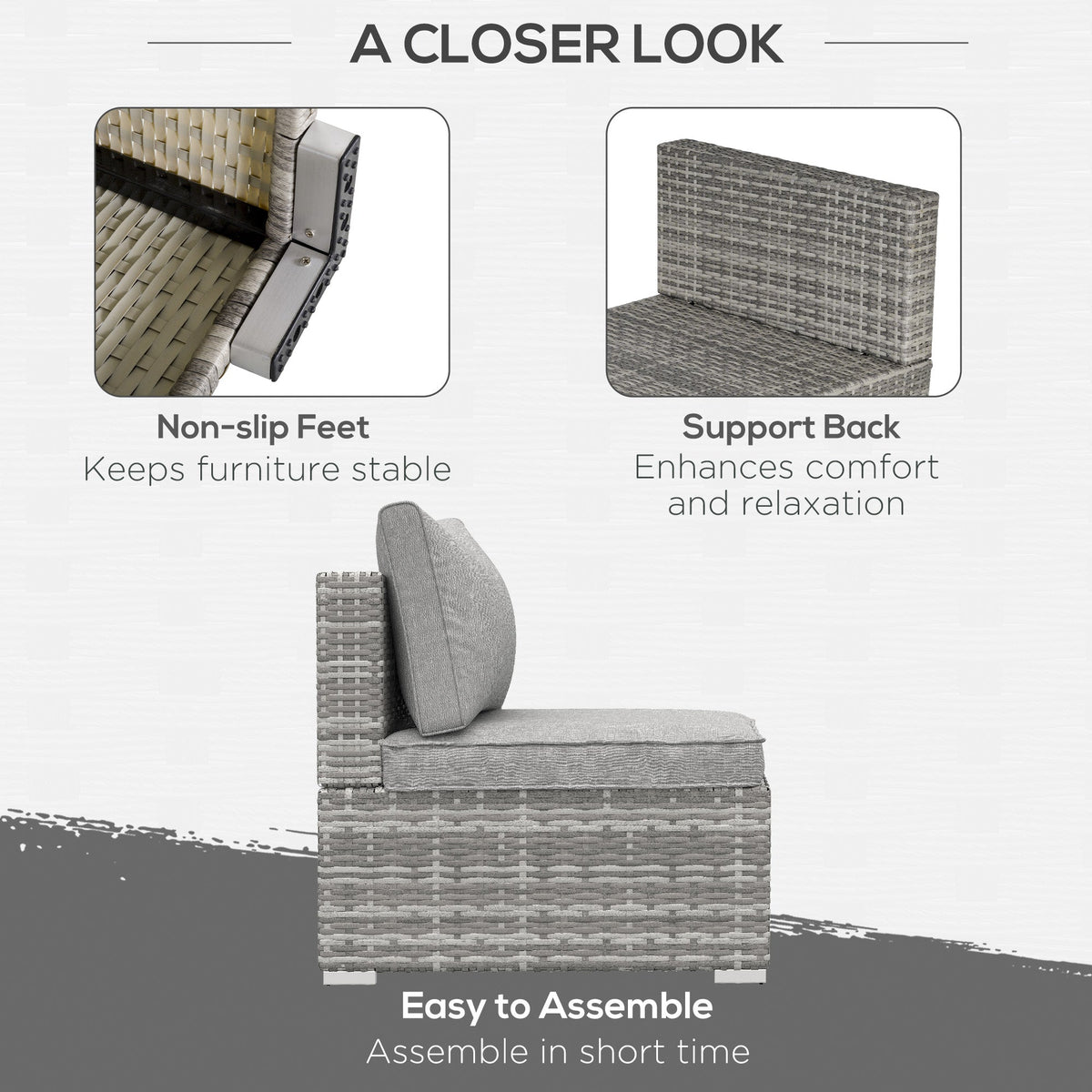 Outsunny Outdoor PE Rattan Furniture with Cushions, Garden Armless Chair with Adjustable Footpads and Back Support Cushion, for Garden, Yard, Terrace, Light Grey - Light Grey