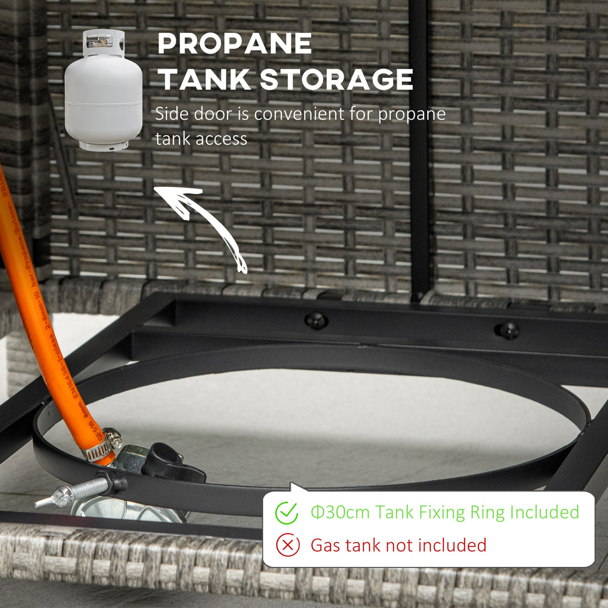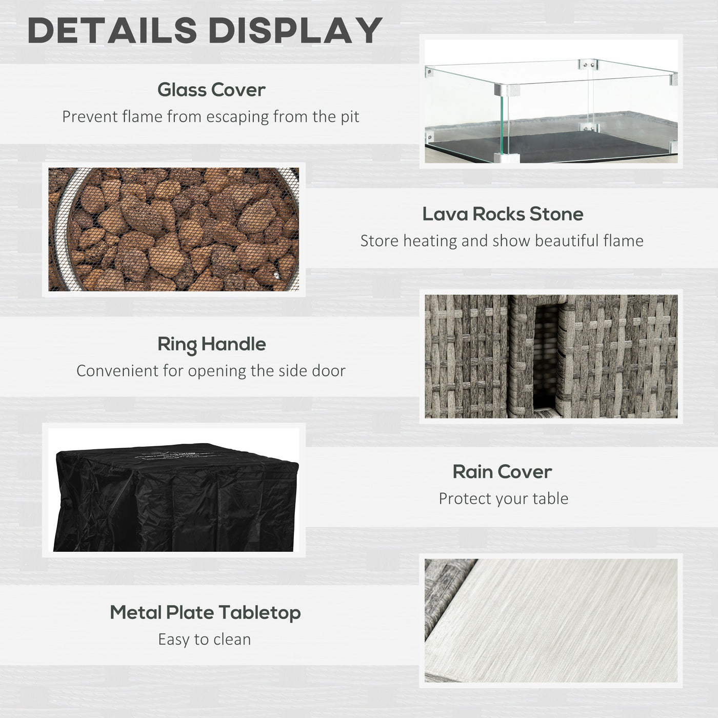 Outsunny Outdoor PE Rattan Gas Fire Pit Table, Patio Square Propane Heater with Rain Cover, Glass Windscreen, and Lava Stone, 50,000 BTU, Grey - Grey