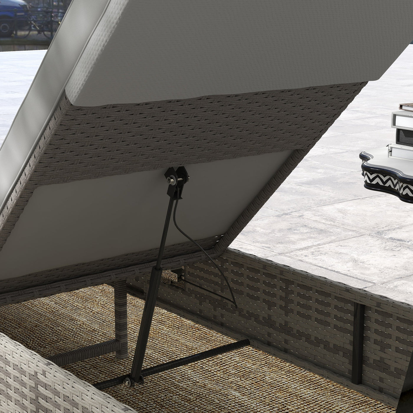 Outsunny Outdoor PE Rattan Sun Lounger, Multi-position Backrest Adjustable Single Recliner Sunbed Daybed with Removeable & Washable Cushion, for Patio, Garden, Light Grey - Light Grey