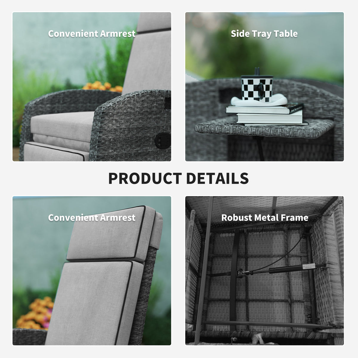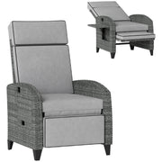 Outsunny Outdoor Recliner Chair with Adjustable Backrest and Footrest, Cushion, Side Tray, Light Grey/Grey - Light Grey