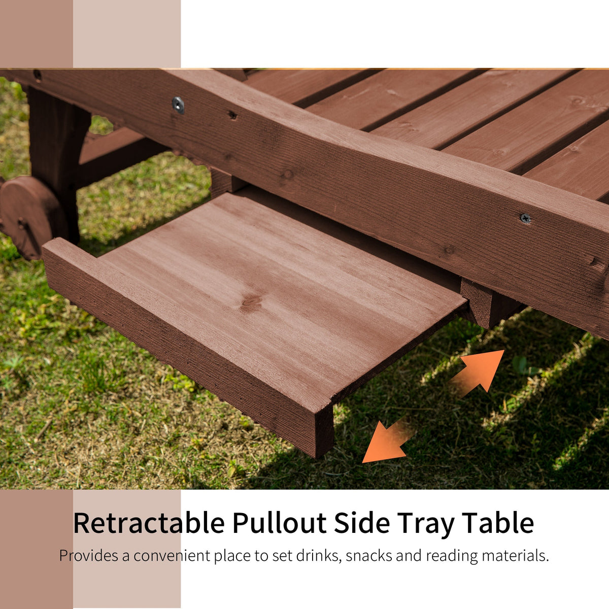Outsunny Outdoor Wooden Lounger Chair, Sun Bed with Built-In Table, Adjustable Backrest and Wheels, Red Brown - Red Brown