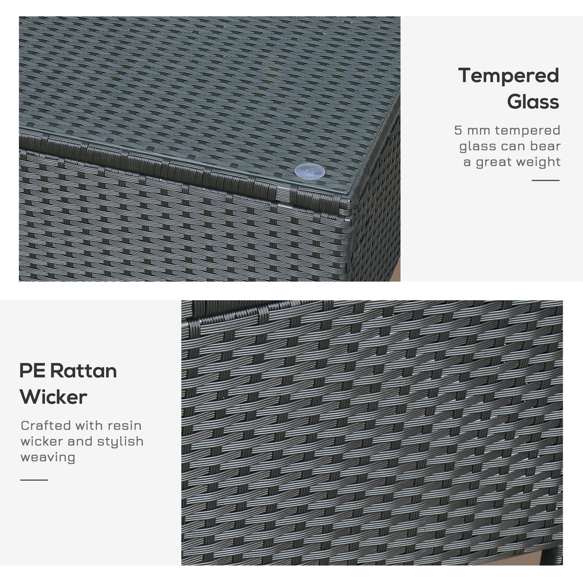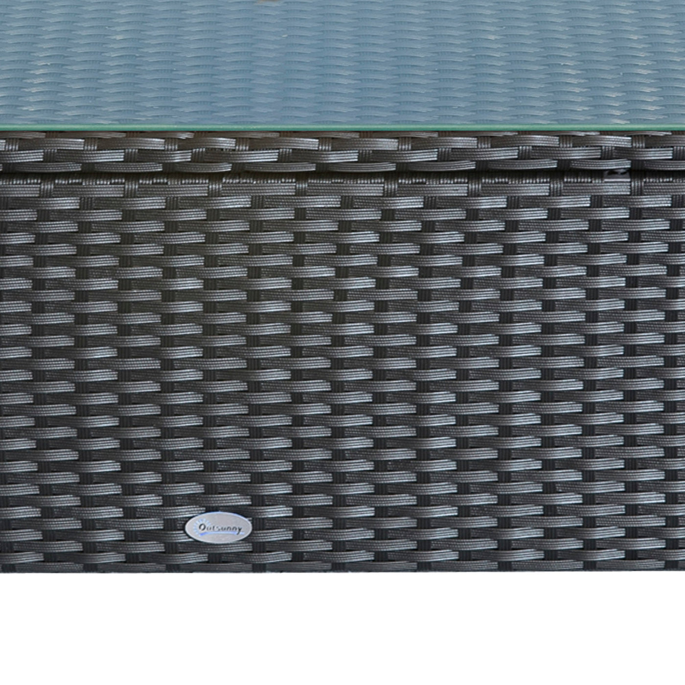 Outsunny PE Rattan Coffee Table, Rectangular Outdoor Coffee Table with Tempered Glass Top, 70 KG Capacity for Garden, Balcony, Terrace, Patio, Black - Black