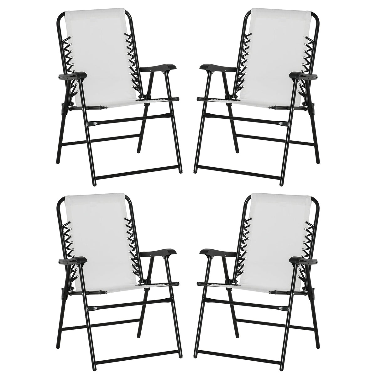 Outsunny Pieces Patio Folding Chair Set, Outdoor Portable Loungers for Camping Pool Beach Deck, Lawn Chairs with Armrest Steel Frame, Cream White - Cream