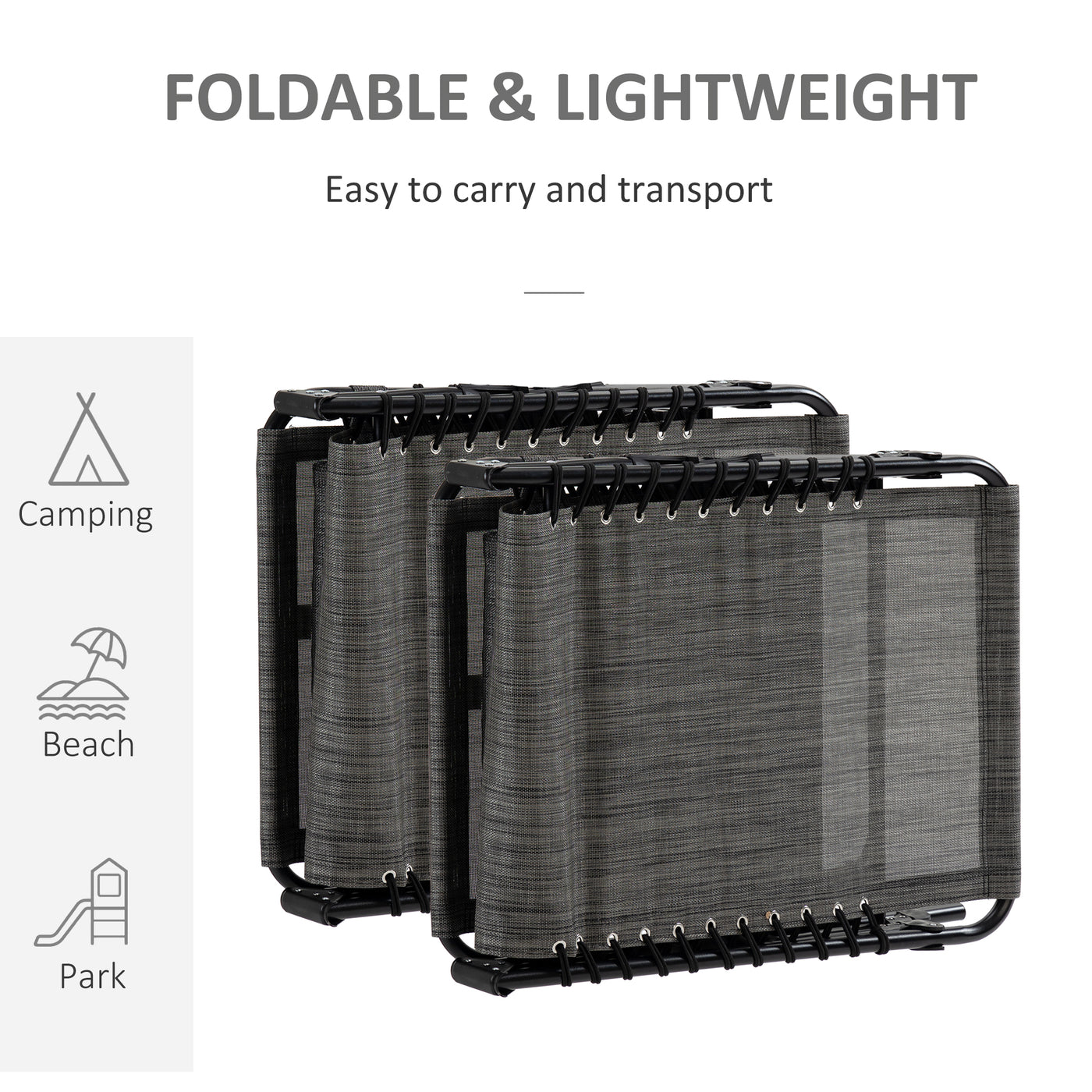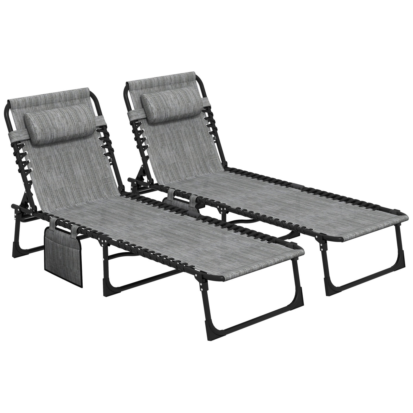 Outsunny Portable Sun Lounger Set of 2, Folding Camping Bed Cot, Reclining Lounge Chair 5-position Adjustable Backrest with Side Pocket, Pillow for Patio Garden Beach Pool, Mixed Grey - Mixed Grey