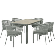 Outsunny Rattan Dining Set, 6 Seater Rattan Garden Furniture Set with Acacia Wood Top Rectangle Table, 6 Chairs, Washable Seat Cushions, for Outdoor, Patio, Conservatory, Grey - Grey
