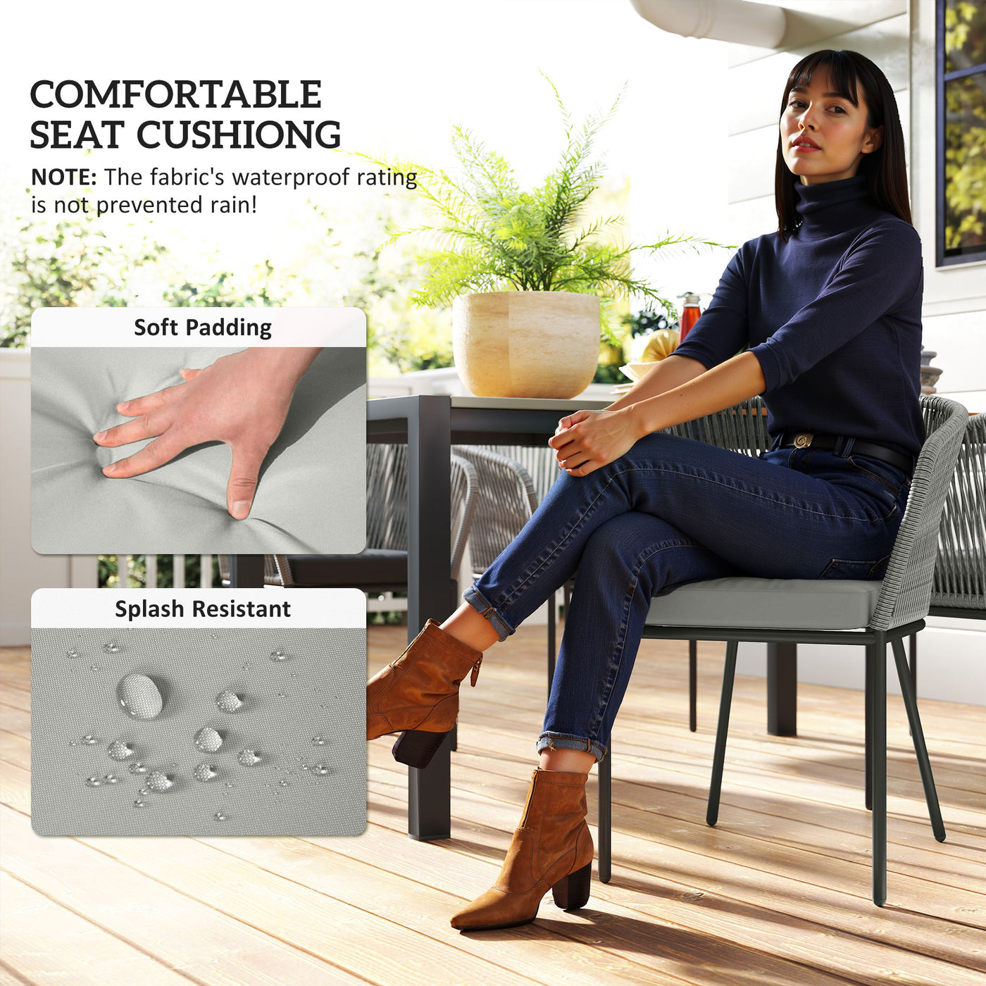 Transform your garden into a blissful dining oasis with the Outsunny garden table and chairs. This 7-piece outdoor garden furniture set, featuring six comfy chairs and a chic acacia wood-topped table, is a masterpiece in design. Crafted from all-weather PE rattan and a rust-resistant steel frame, it pairs durability with elegance, ensuring your outdoor gatherings are both stylish and comfortable.