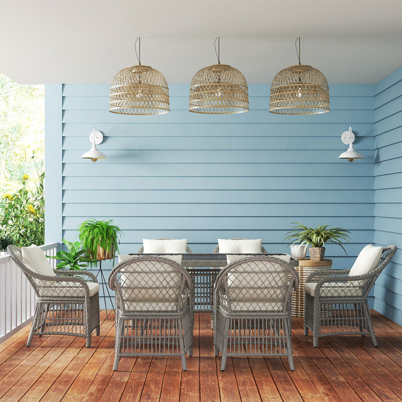 Outsunny Rattan Dining Set with Seat and Back Cushions, 6 Seater Garden Furniture Set with Aluminium Frame, 6 Chairs, WPC Top Rectangle Table, Conservatory Wicker Patio Furniture, Grey - Grey