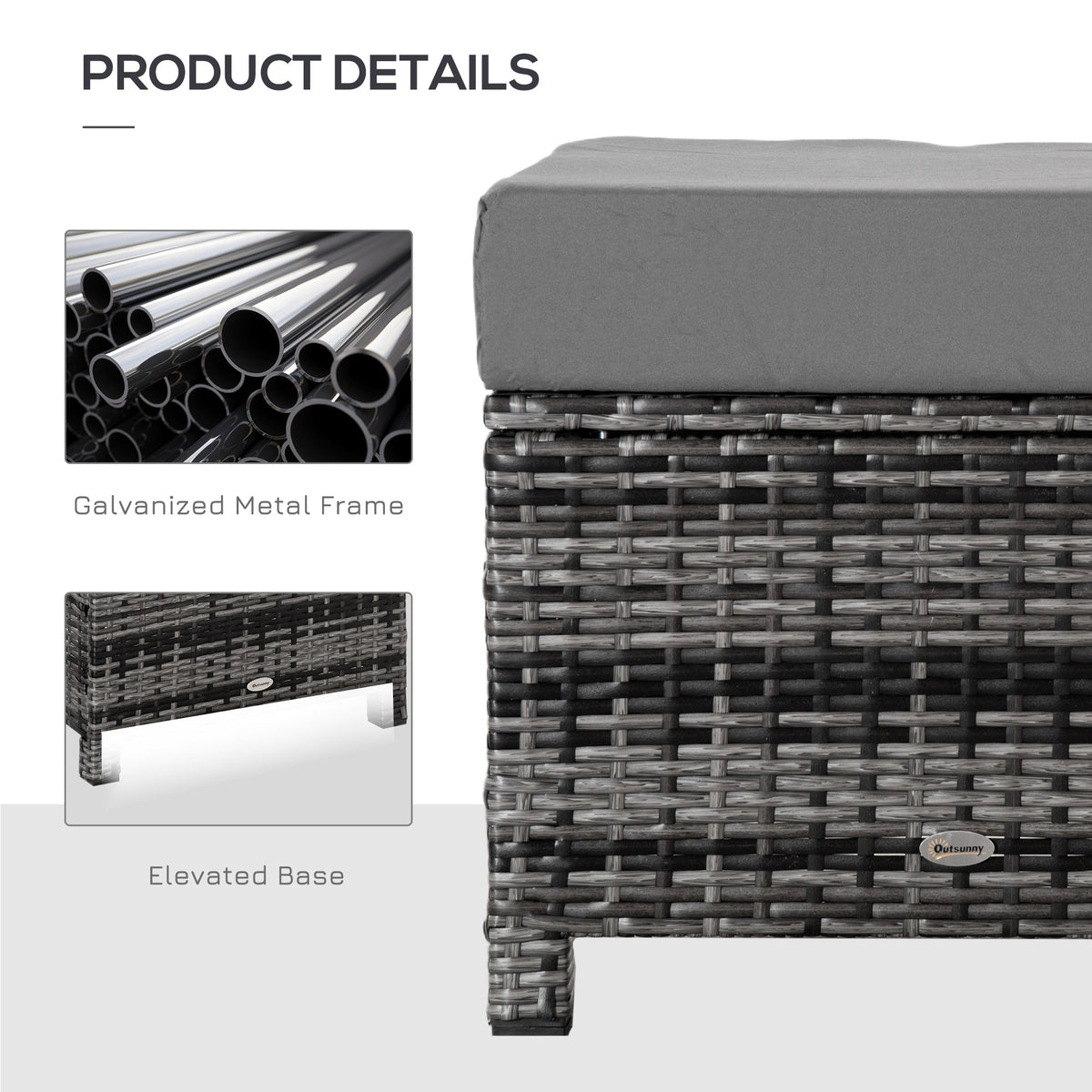 Outsunny Rattan Footstool Wicker Ottoman with Padded Seat Cushion Outdoor Patio Furniture for Garden Poolside Living Room, 50 x 50 x 35 cm, Grey - Grey