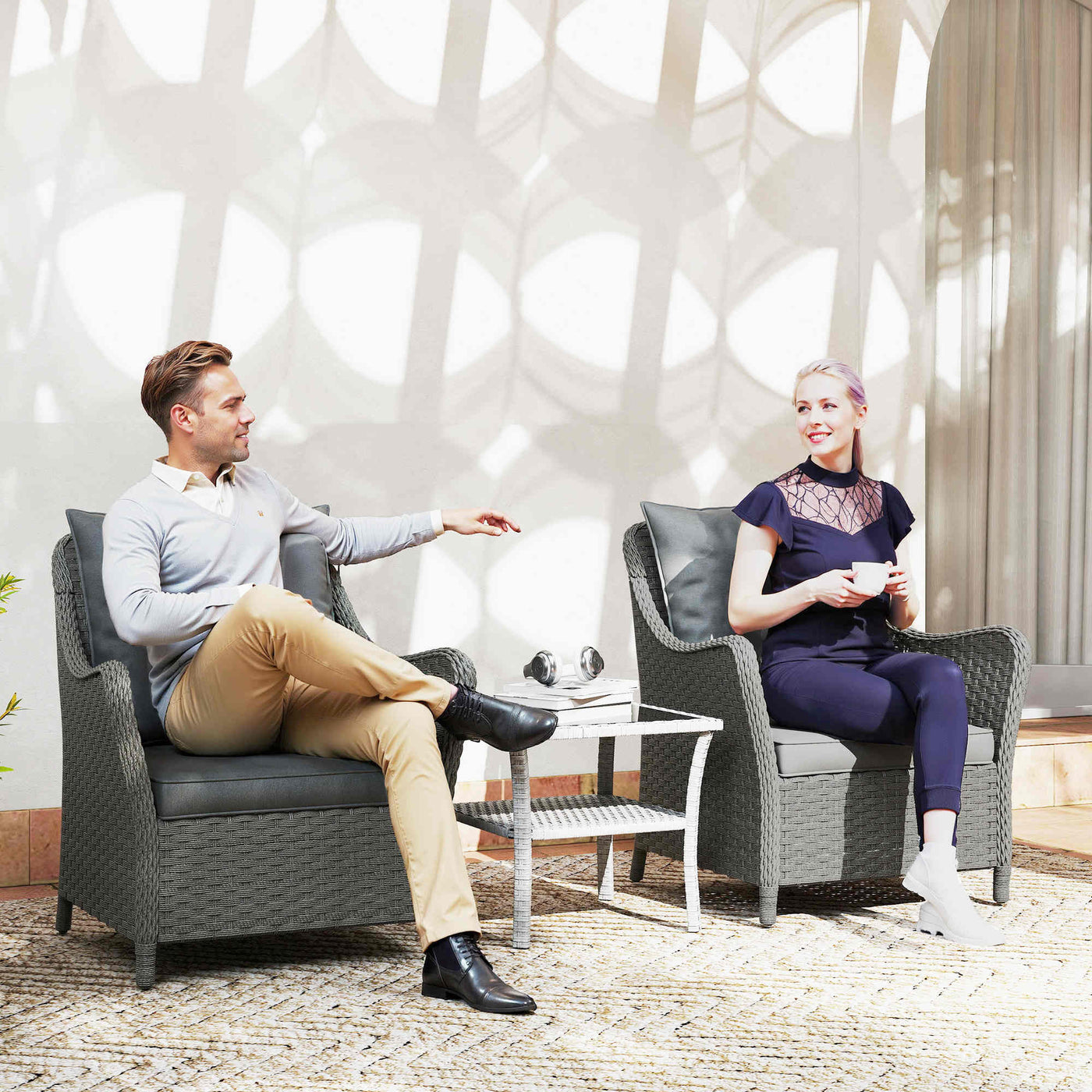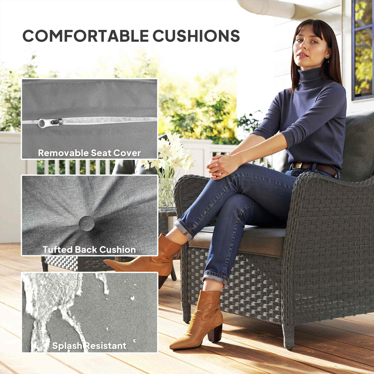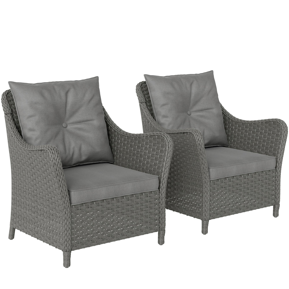 Outsunny Rattan Garden Chairs Set of 2, Outdoor Rattan Chairs with Cushions, Armrests and High Back, PE Wicker Garden Armchair with Steel Frame for Balcony, Porch, Dark Grey - Dark Grey