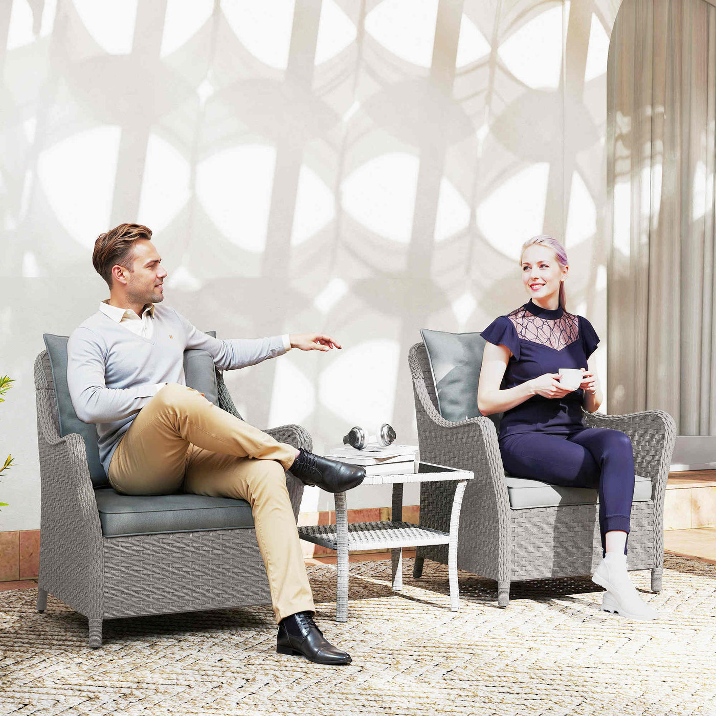 Outsunny Rattan Garden Chairs Set of 2, Outdoor Rattan Chairs with Cushions, Armrests and High Back, PE Wicker Garden Armchair with Steel Frame for Balcony, Porch, Light Grey - Light Grey