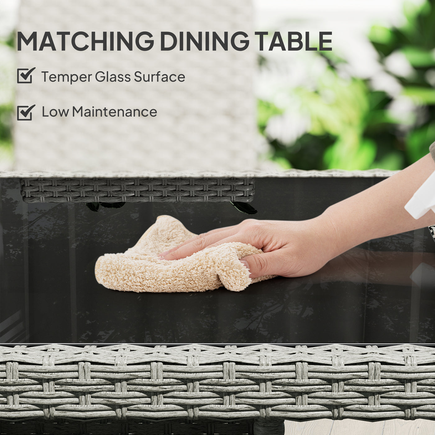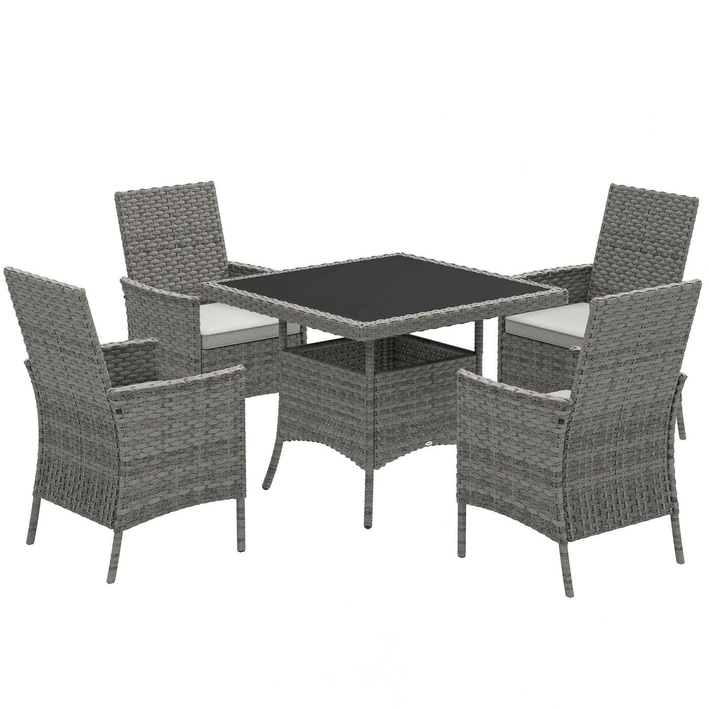 Outsunny Rattan Garden Furniture Set, Outdoor Dining Table and Chairs 4 Seater with Cushions, Square Tempered Glass Top, 4 Armchairs, for Balcony, Terrace, Conservatory, Grey - Grey