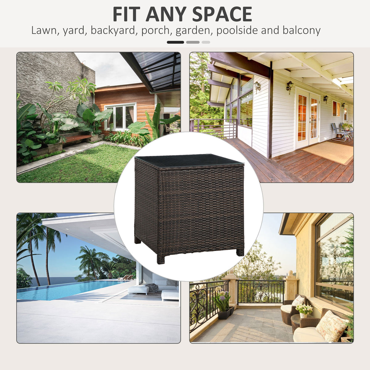 Outsunny Rattan Garden Furniture Side Table Patio Frame Tempered Glass New - Brown - Mixed Brown