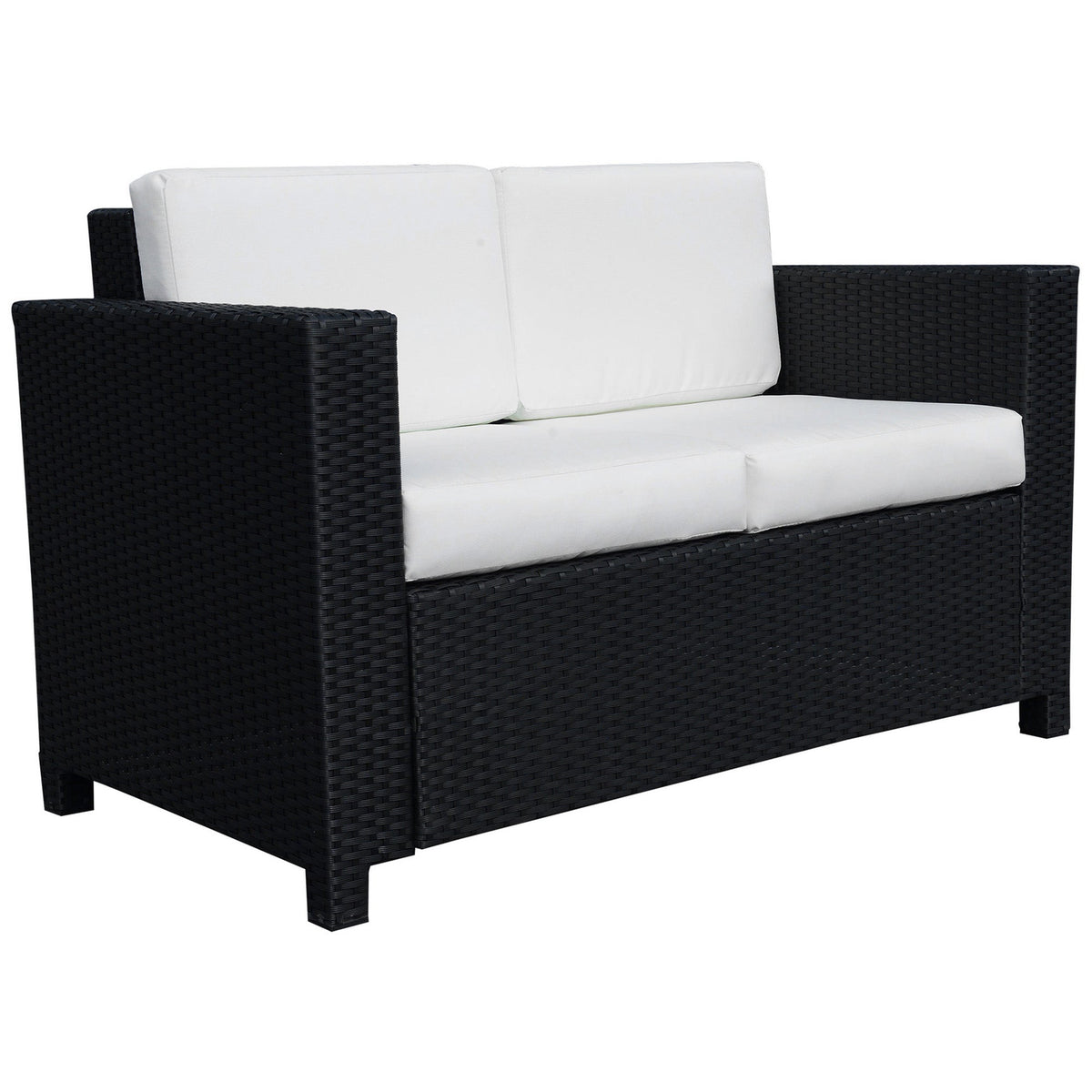 Outsunny Rattan Sofa, 2 Seater Garden Furniture with Soft Padded Cushion and Armrests, Wicker Garden Loveseat for Patio, Black - Black