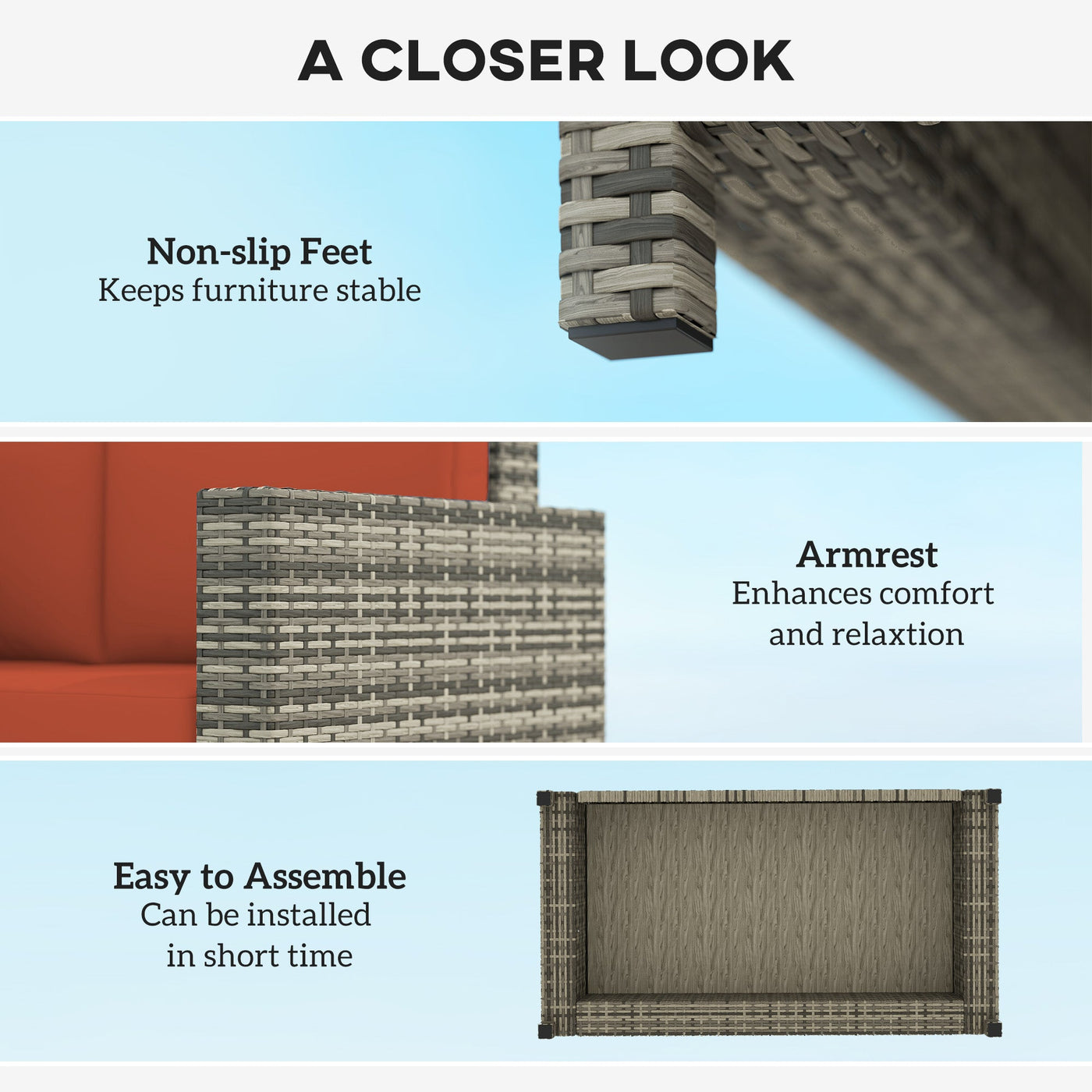 Outsunny Rattan Sofa, 2 Seater Garden Furniture with Soft Padded Cushion and Armrests, Wicker Garden Loveseat for Patio, Grey