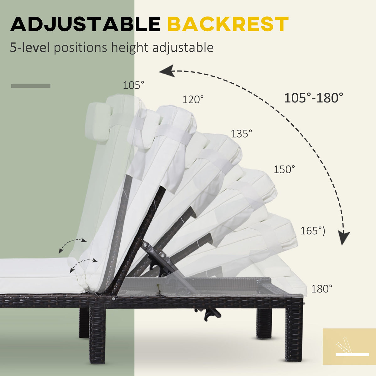 Outsunny Rattan Sun Lounger, 5-Level Adjustable Garden Lounger Recliner with Cushion and Headrest, Outdoor Reclining Sunbed, Steel Frame Garden Chair for Patio, Beach, Terrace, Cream White - Cream