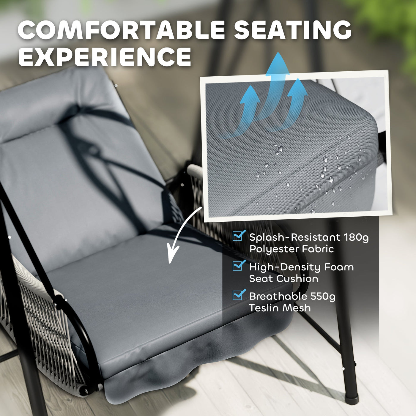Discover the charm of the Outsunny hanging garden chair, where style meets comfort. Sink into the high-density sponge cushions for unrivalled softness, or enjoy the breathable 550 g teslin mesh on warmer days. Admire the UV-resistant PE rattan wrapped armrests that add a unique flair, all while relaxing on a robust steel frame designed for stability in your favourite garden nook.