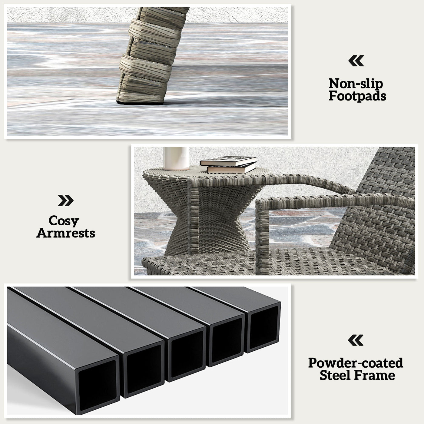 Outsunny Reclining Rattan Lounger, with Extending Footrest - Grey - Grey