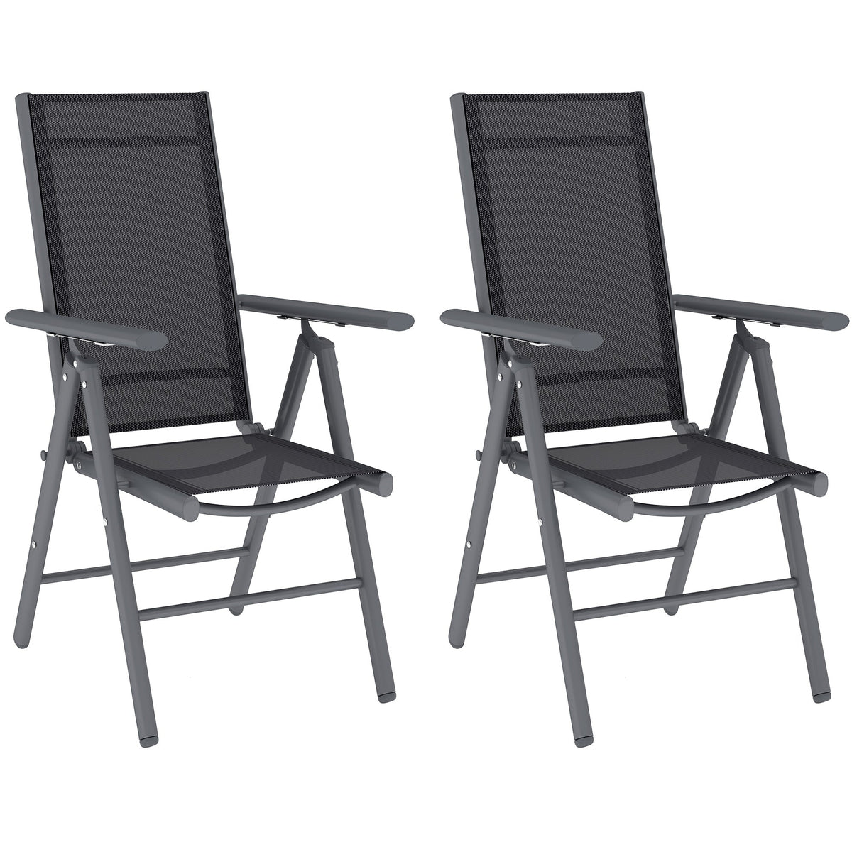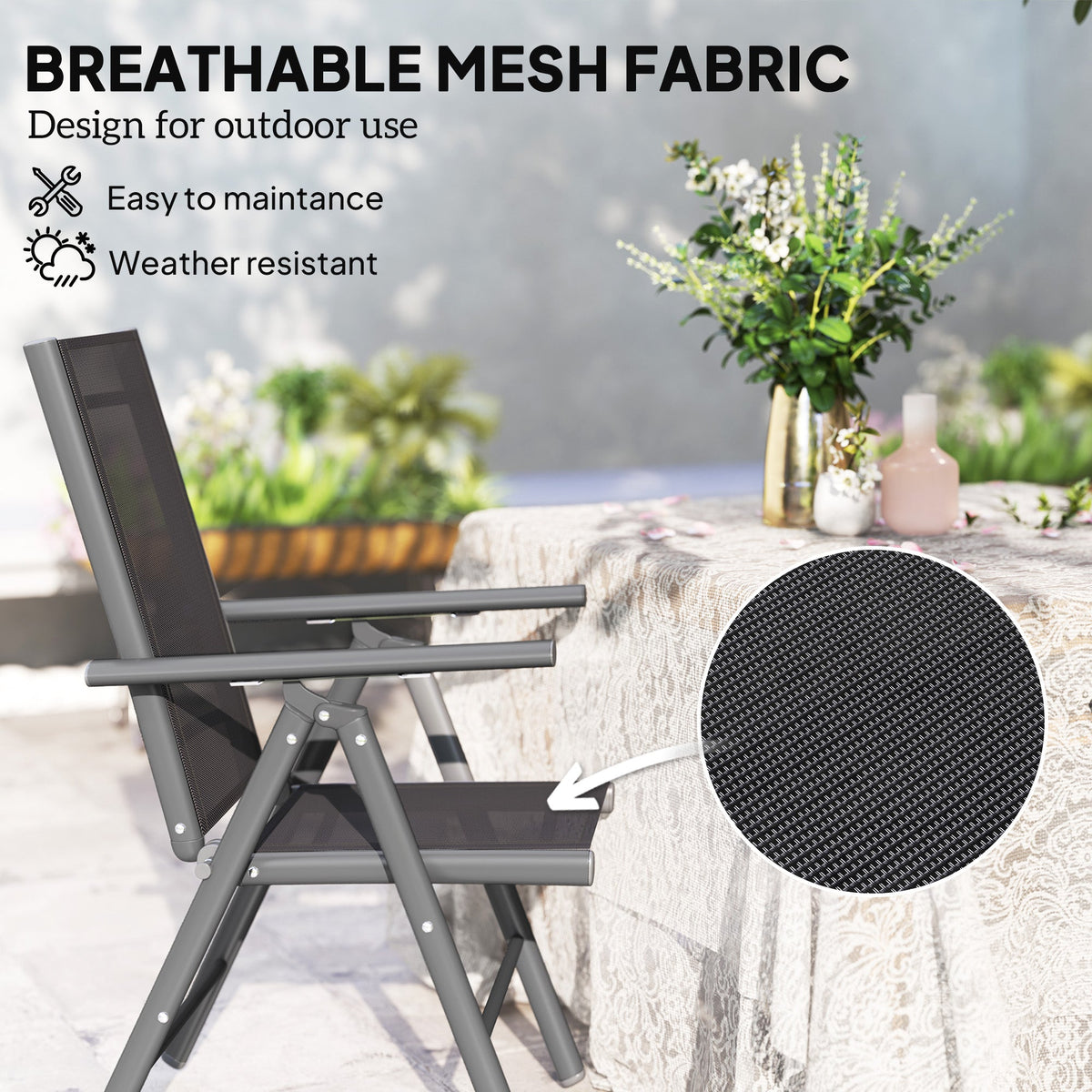 Outsunny Set of 2 Folding Chair, Aluminium Frame Outdoor Camping Chairs with Breathable Mesh Back and Seat, Garden Chair Set with Armrests for Balcony, Dark Grey - Dark Grey